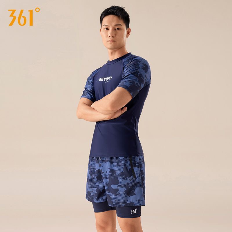 Bộ bơi nam cộc tay, màu xanh, Speed zone, vải chống nắng UPF50+, 361