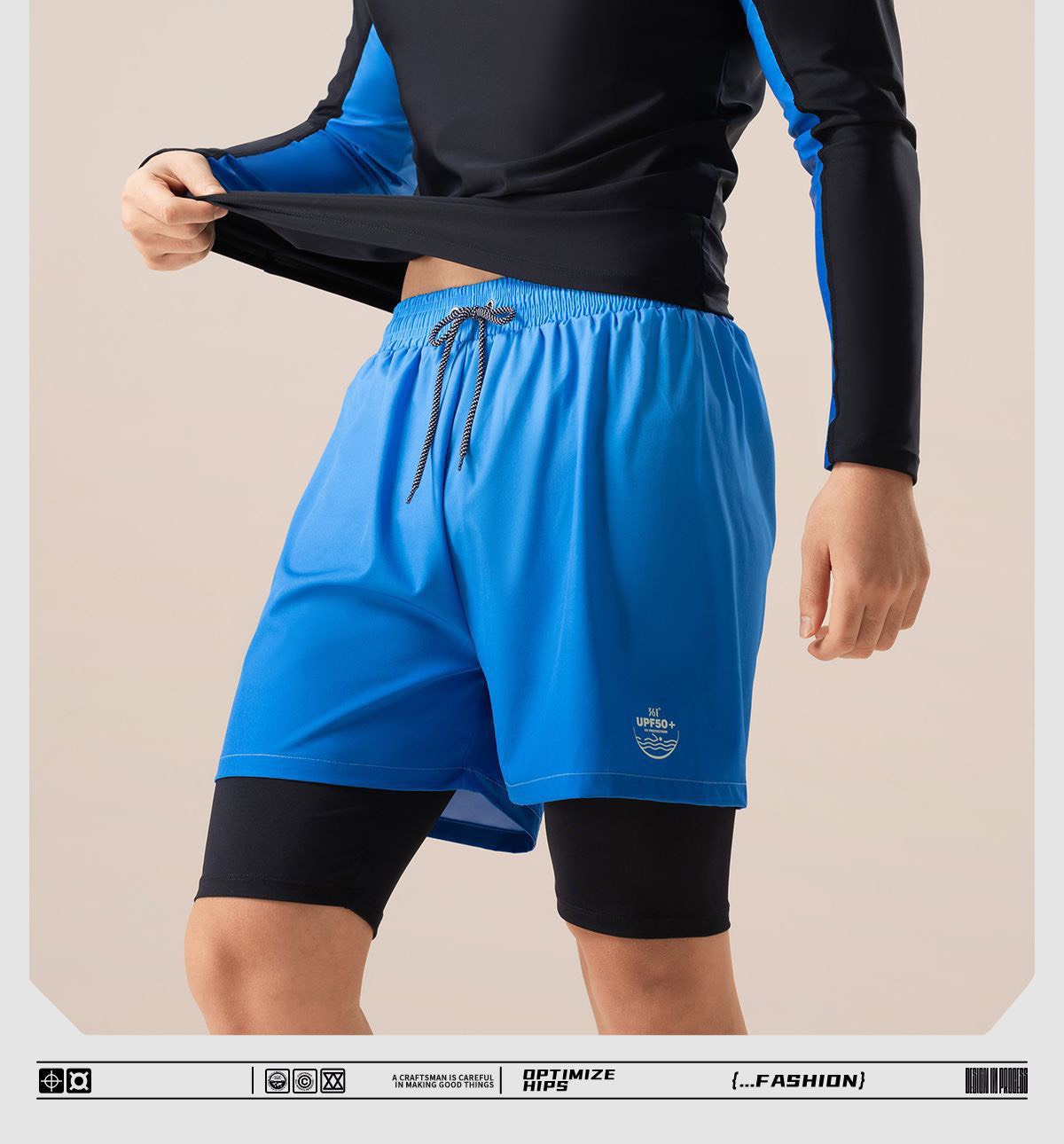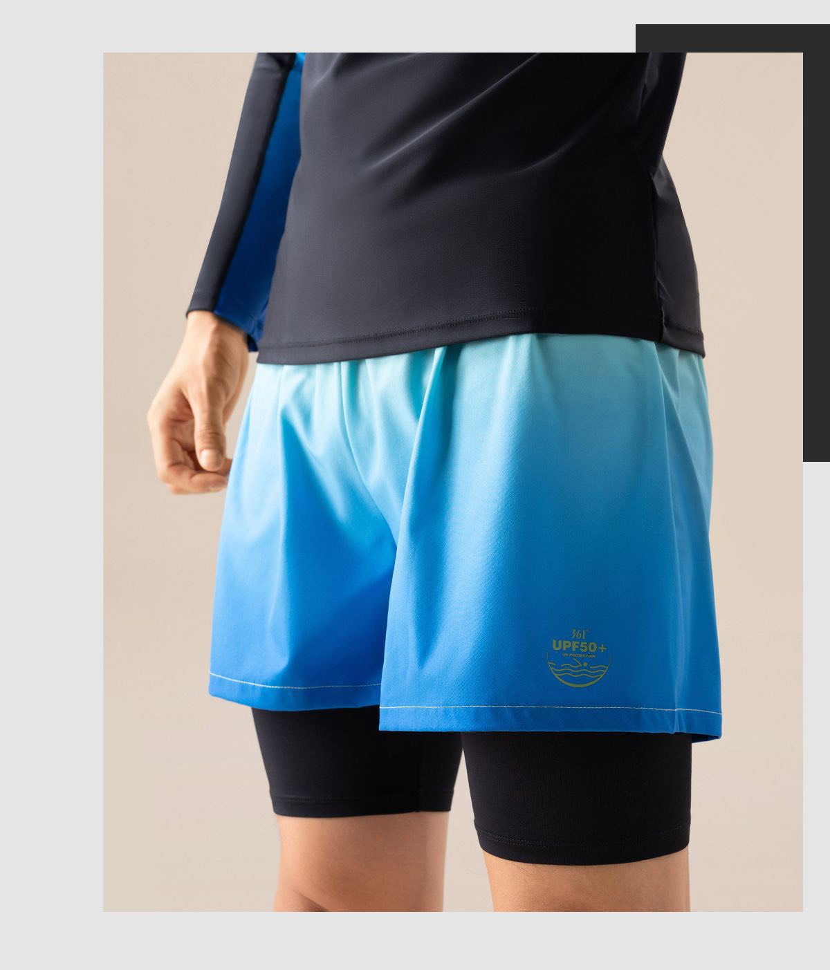Bộ bơi nam cộc tay, màu xanh, Speed zone, vải chống nắng UPF50+, 361