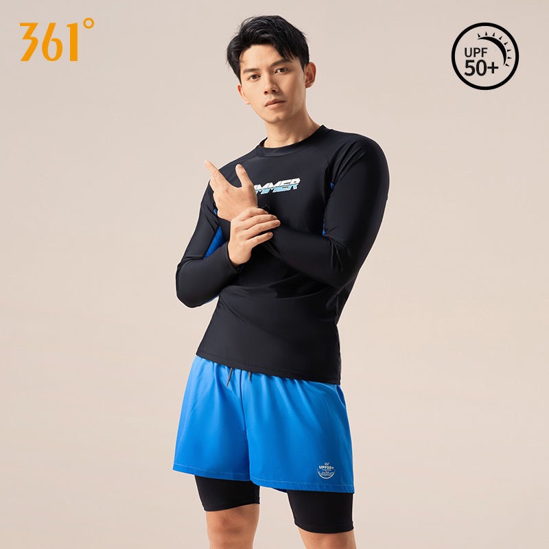 Bộ bơi nam cộc tay, vải chống nắng UPF50+, màu xám, quần 2 lớp, 361