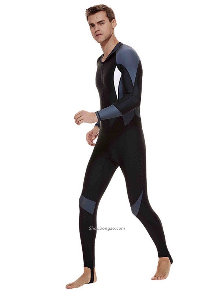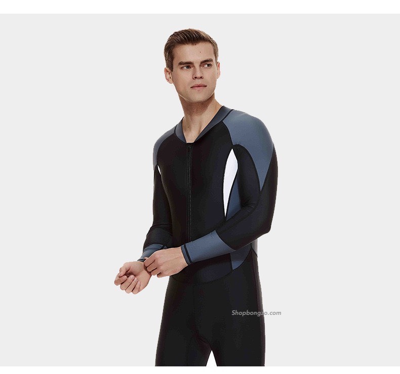 Bộ bơi nam dài liền, màu đen, tay xám, vải chống nắng, Sbart 1330