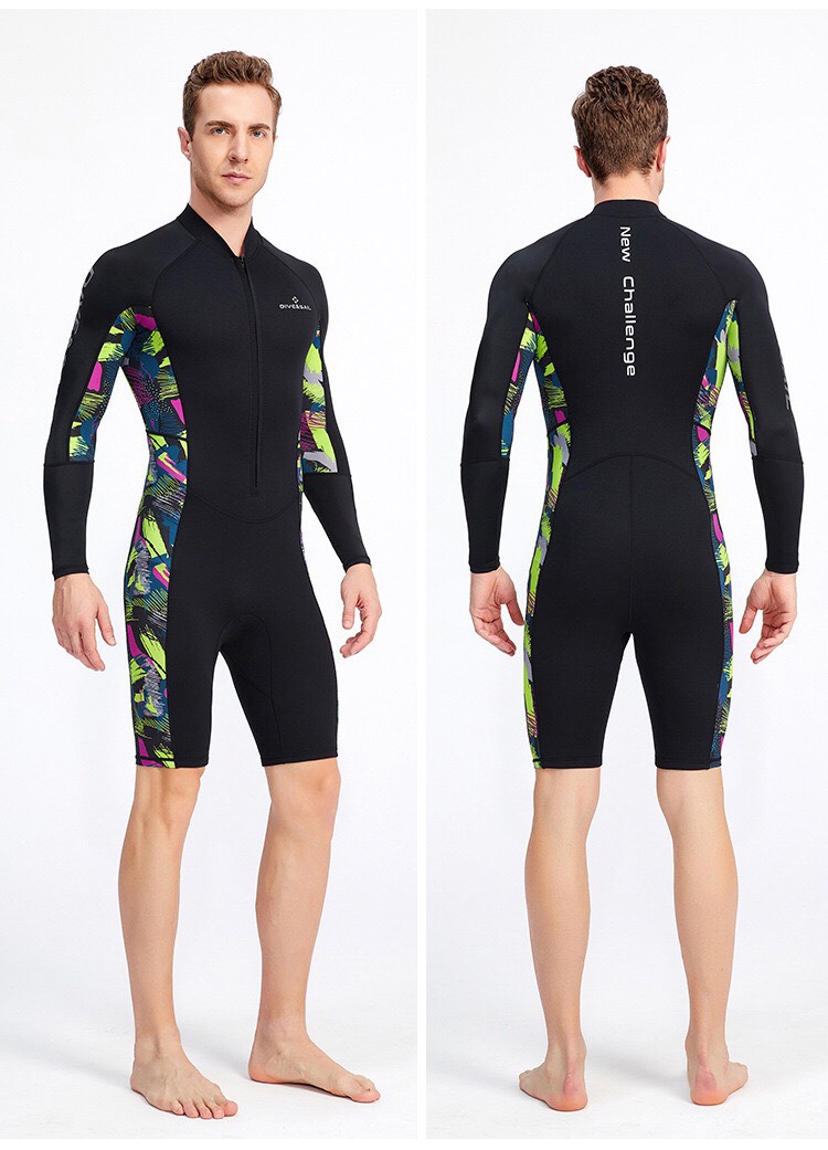 Bộ bơi giữ nhiệt nam, dài tay dáng rời, màu đen, vải dày 1.5mm Dive Sail