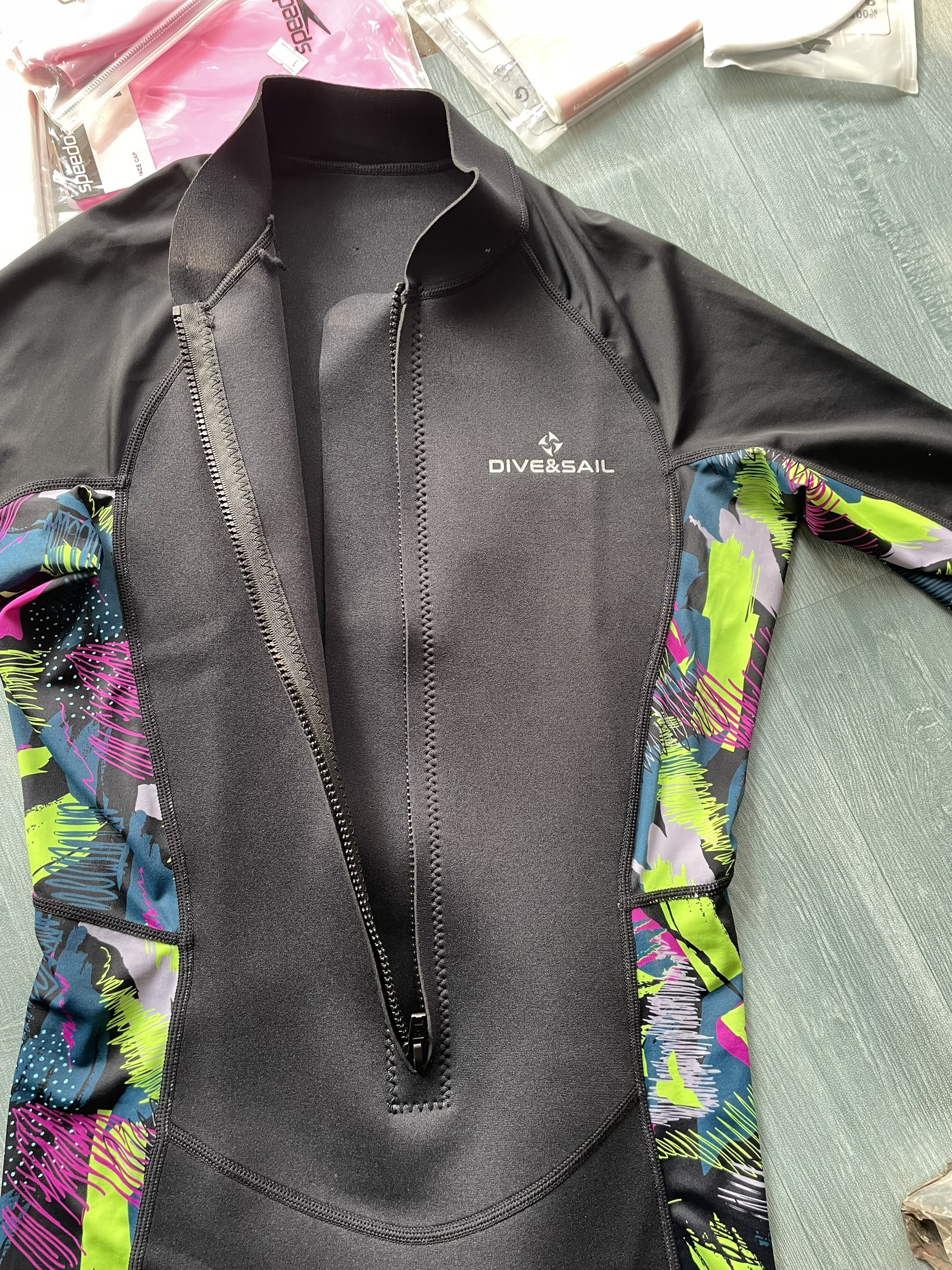 Bộ bơi nữ giữ nhiệt, dài tay, màu đen xanh, vải dày 1.5mm, Dive Sail