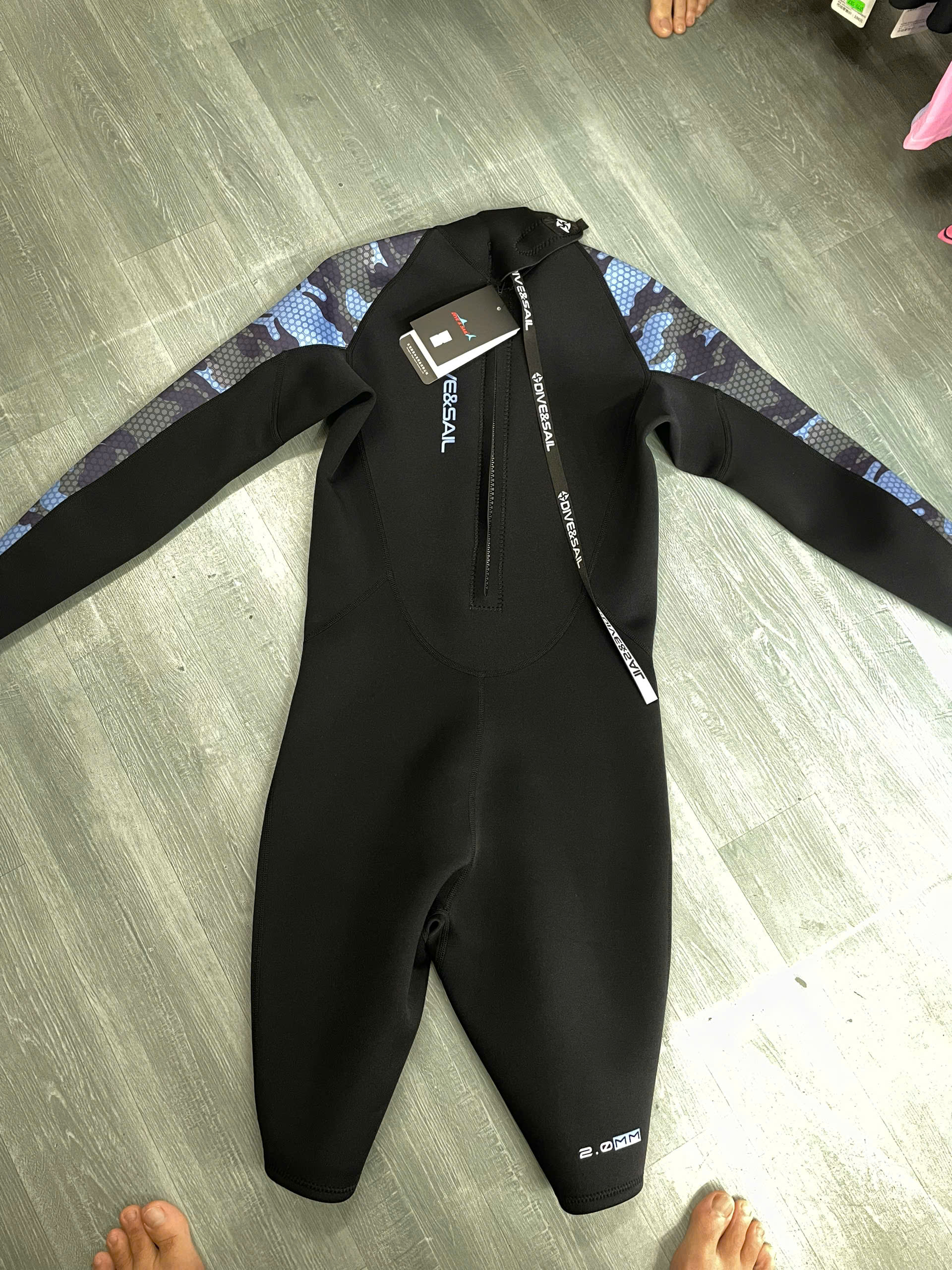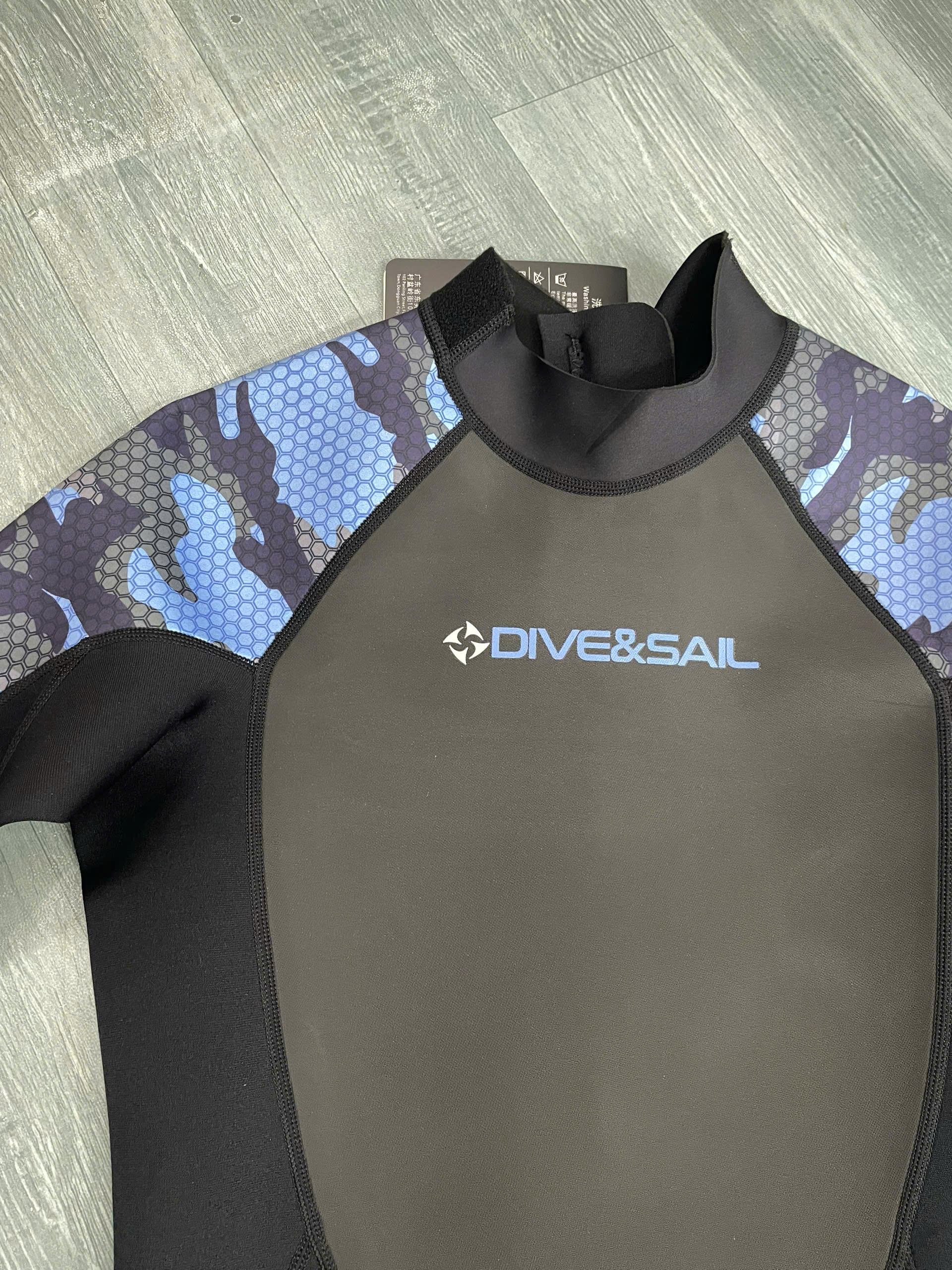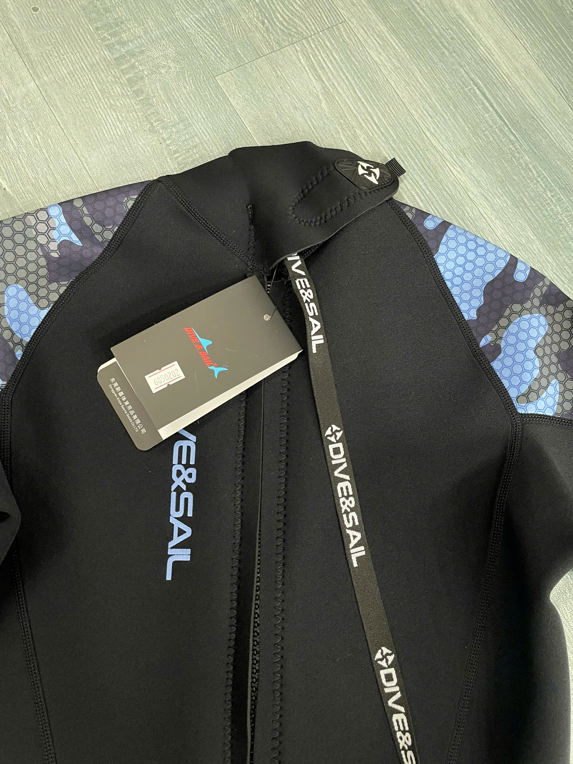 Bộ bơi giữ nhiệt nam dài tay, đen tay xanh, vải dày 2mm, DiveSail