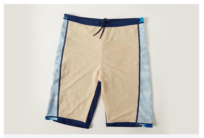 Bộ bơi nam dài tay, vải chống nắng UPF 50+, kháng Clo, màu xanh tay trắng, Momasong