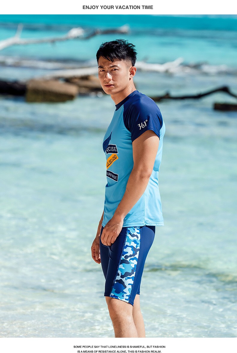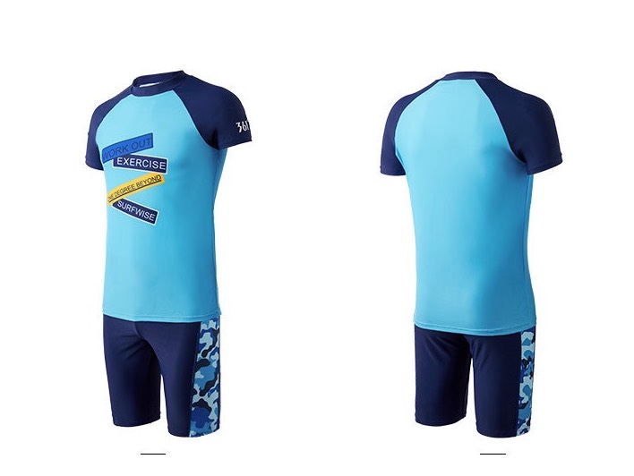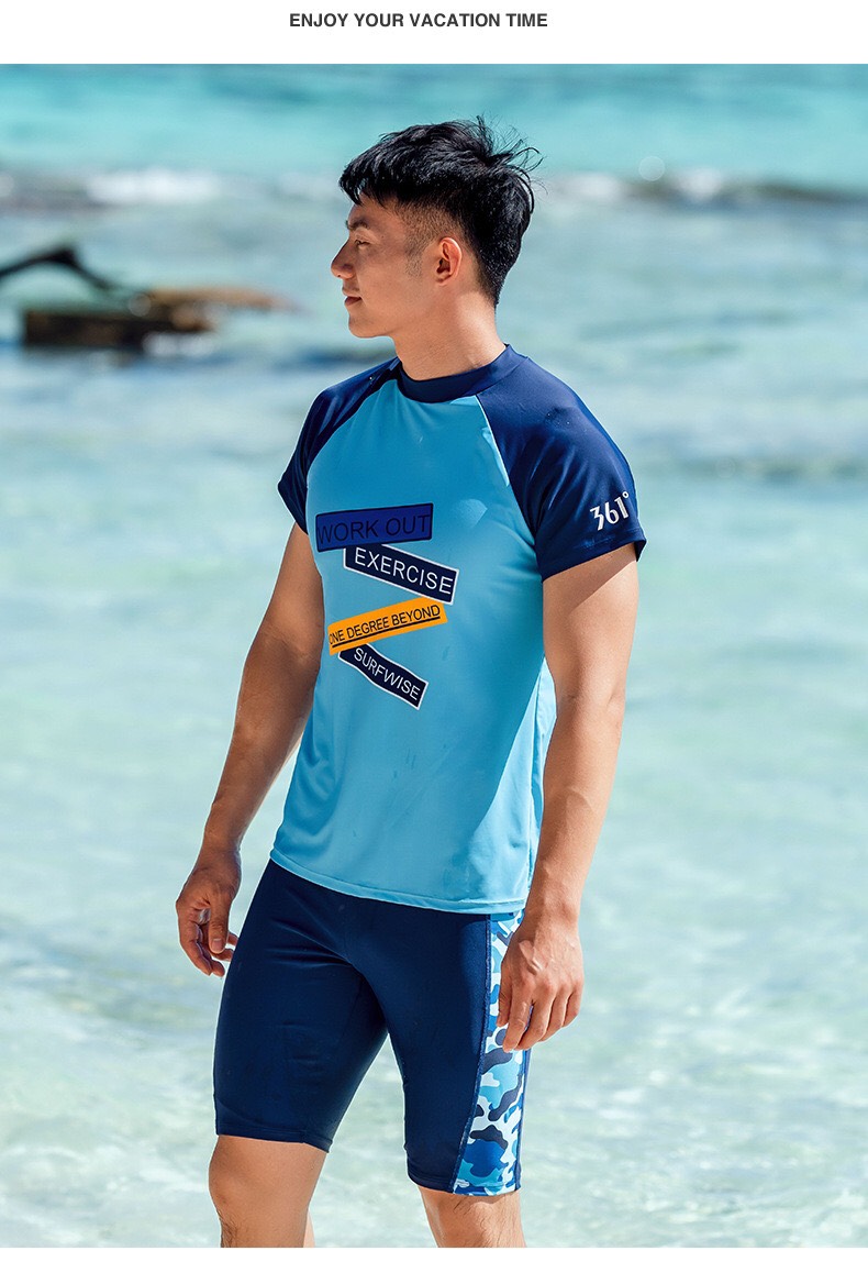 Bộ bơi nam cộc tay, màu xanh, Speed zone, vải chống nắng UPF50+, 361