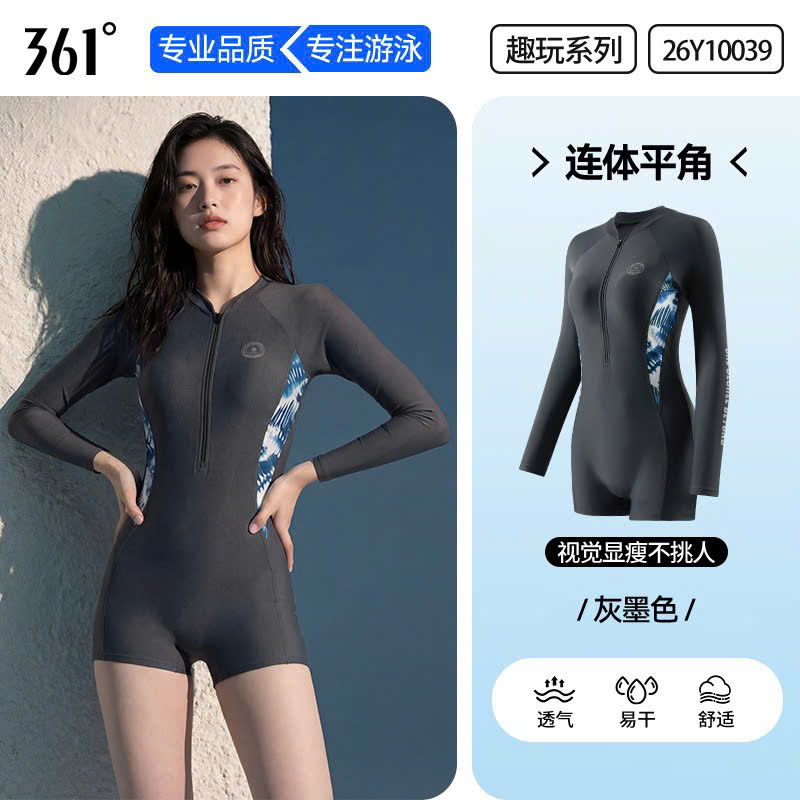 Bộ bơi nữ 361, chống nắng UPF 50+, dài tay liền thân, tôn dáng, hàng cao cấp, xám đen