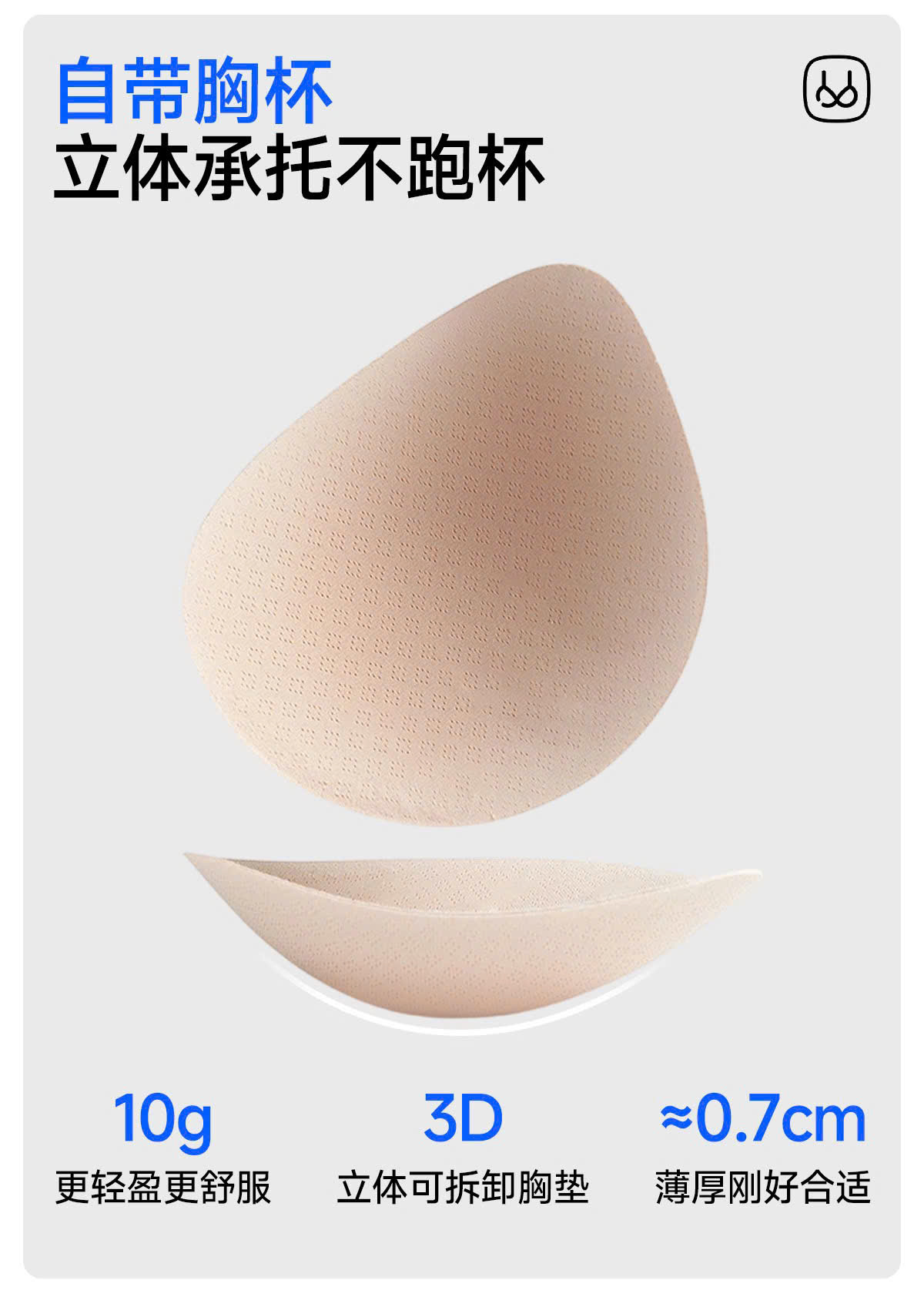 + Lót ngực liền khối, thoáng khí, ôm sát tự nhiên 360 độ, giữ dáng tốt ngay cả khi không có gọng, vẫn đảm bảo thoáng khí thoải mái khi vận động