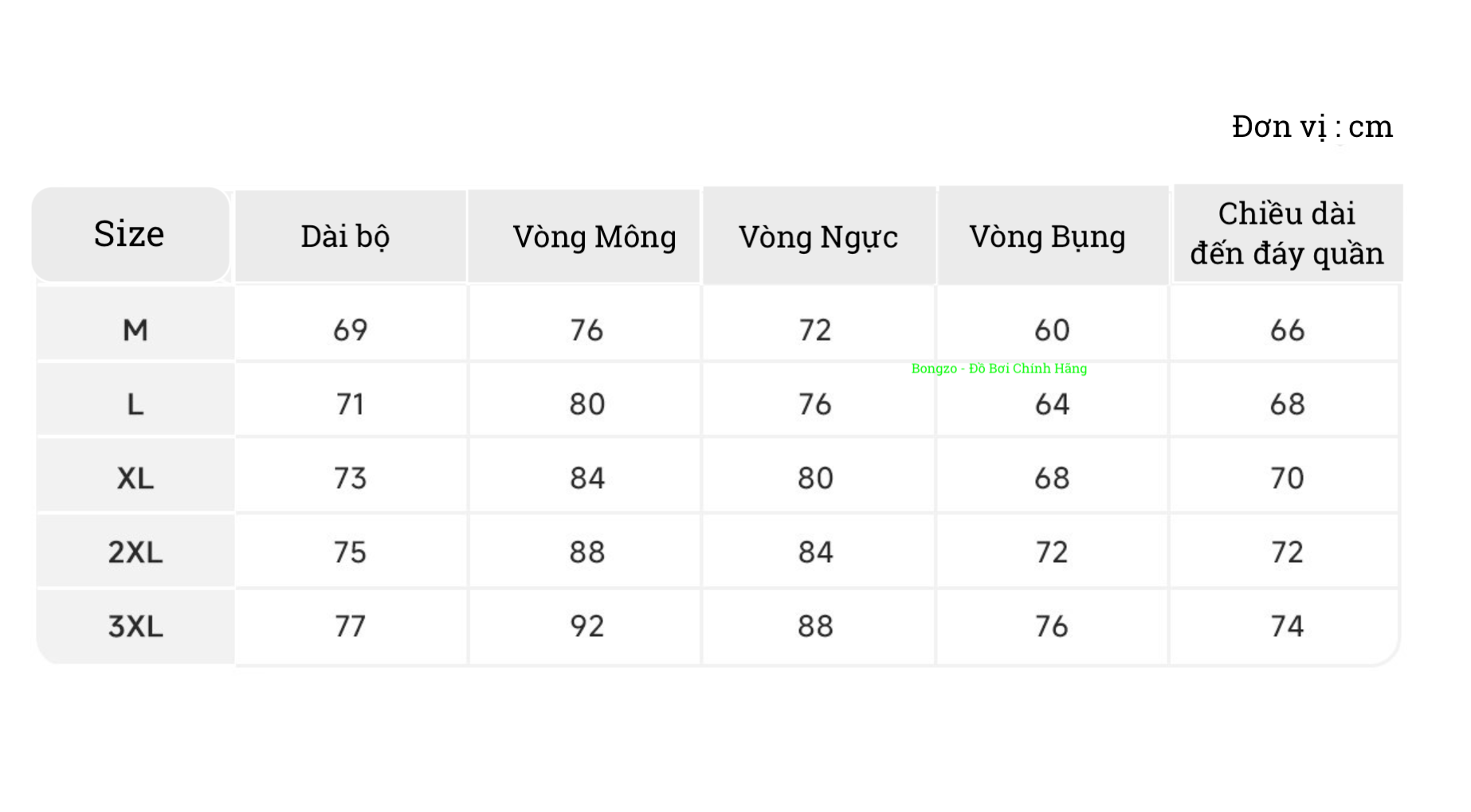 THƯƠNG HIỆU : 361 ( hãng đồ bơi nổi tiếng China tiêu chuẩn EU) KIỂU DÁNG : Dài tay chân, dáng rời, quần 2 lớp liền nhau Phù hợp cho các hoạt động bơi lội, tắm biển, trèo thuyền, lướt sóng, tắm khoáng nóng … cũng như các hoạt động dưới nước CHẤT LIỆU + Vải đồ bơi cao cấp Lycra (82% Nynol 18% Spandex), mềm mại, co giãn 4 chiều + Chất vải thoáng khí, mau khô giúp chống lạnh cơ thể + Chất liệu vải cao cấp chống phai màu, bền bỉ + Vải kháng Clo + Chống UV TÁC DỤNG + Chống nắng với chỉ số UPF 50++ , chống 98% tia sáng có hại cho da + Chất vải thoáng khí mau khô, do vậy có tác dụng chống lạnh khi lên bờ + Bơi bể kháng Clo giúp da tránh tiếp xúc trực tiếp với nước bể bơi nhiều hóa chất + Tắm biển, lặn biển bảo vệ da khỏi các loại côn trùng, sứa biển,....hoặc các con vật khác gây ngứa khó chịu cho da THIẾT KẾ + Khoá kéo áo chính hãng, mặt trong khoá có lót vải bảo vệ, tránh khoá tiếp xúc với da + Áo có lót ngực chắc chắn, khi giặt có thể tháo rời + Lót ngực liền khối, thoáng khí, ôm sát tự nhiên 360 độ, giữ dáng tốt ngay cả khi không có gọng, vẫn đảm bảo thoáng khí thoải mái khi vận động + Quần 2 lớp liền nhau, tạo dáng thon gọn dấu vòng bụng, kín đáo lịch sự + Mặt trong áo có thêm 1 lớp vải mềm thoáng khí, giúp thoải mái khi vận động + Quần cạp chun co giãn, có thêm dây rút điều chỉnh. Mặt trong phía trước quần có thiết kế thêm 1 lớp vải Cotton mỏng. + Quy trình máy may 4 mũi kim 6 đường chỉ, tạo ra sự chắc chắn, hình thức đẹp, bảo đảm tuyệt đối không rách vải khi vận động + Công nghệ in sử dụng keo đặc biệt dùng cho trang phục đồ lặn, rất chắc chắn, không phai màu và chống rách tuyệt đối LƯU Ý SỬ DỤNG & BẢO QUẢN Do bộ bơi chất liệu vải co giãn, thường có nhiều màu sắc sặc sỡ khác nhau. Để tăng tuổi thọ, tính năng cũng như mẫu mã của bộ bơi, khi sử dụng nên lưu ý những điều sau : Tránh các hoạt động có ma sát cao như cầu trượt,.. vì chất vải tự nhiên co giãn nhiều rất dễ làm hỏng kết cấu sợi vải + Khi bơi xong nên giặt càng sớm càng tốt, vì nước biển có muối, bể bơi có chất clo, kem chống nắng, các loại dầu đều có thể làm giảm tính đàn hồi của vải bơi + Nếu không có điều kiện giặt luôn bằng nước giặt thì cũng nên tráng bộ bơi qua nước sạch rồi để nơi cho giáo nước + Khi bộ bơi chưa khô không nên để chung cùng quần áo khác + Tốt nhất chỉ nên giặt bằng tay + Tránh chất tẩy rửa mạnh (tốt nhất nên giặt bằng dầu gội hoặc sữa tắm ) + Không phơi dưới ánh nắng trực tiếp + Không là (ủi), sấy khô Đổi hàng trong 5 ngày sau khi nhận với lỗi của nhà sản xuất + Chỉ nhận đổi hàng với sản phẩm chưa qua sử dụng + Chỉ đổi sang các sản phẩm có giá trị bằng hoặc cao hơn + Quý khách vui lòng chụp ảnh / quay video khi nhận hàng để được hỗ trợ tốt nhất VẬN CHUYỂN + Thời gian dự kiến 2-5 ngày (tuỳ khu vực ) sau khi shop giao cho đơn vị vẩn chuyển + Đối với khách tại các quận nội thành Hà Nội muốn giao gấp (1-2 tiếng), nhận hàng trong ngày, lên đơn Hoả Tốc. Sau khi lên đơn bấm mục Theo Dõi Đơn Hàng để xem thời gian và quá trình nhận Cam kết chỉ bán hàng CHÍNH HÃNG Bongzo - Đồ Bơi Chính Hãng 166 Ngọc Khánh - Giảng Võ - Ba Đình - Hà Nội 094 6886 012 - 034 994 0705495.000₫