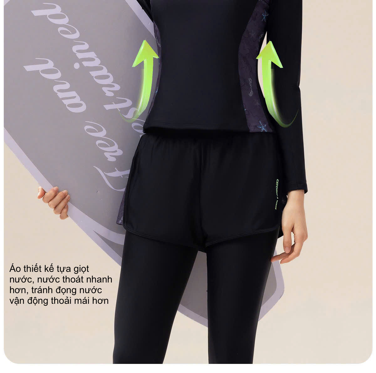 Bộ bơi nữ 361 dài tay dáng rời, chống nắng UPF 50+, co giãn thoáng khí