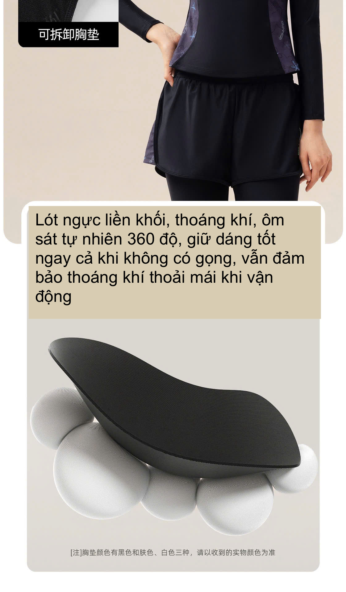+ Áo có lót ngực chắc chắn, khi giặt có thể tháo rời