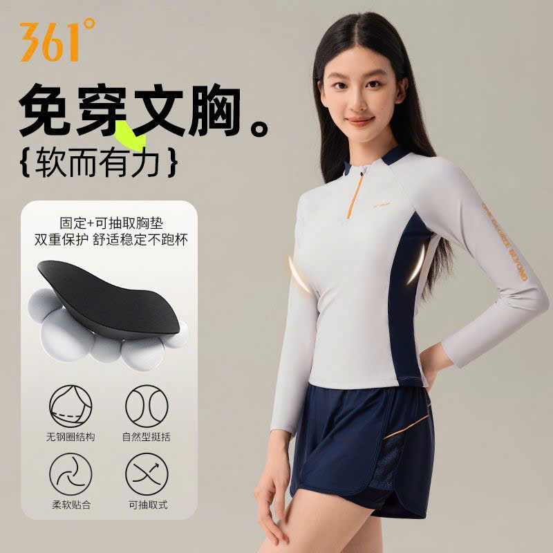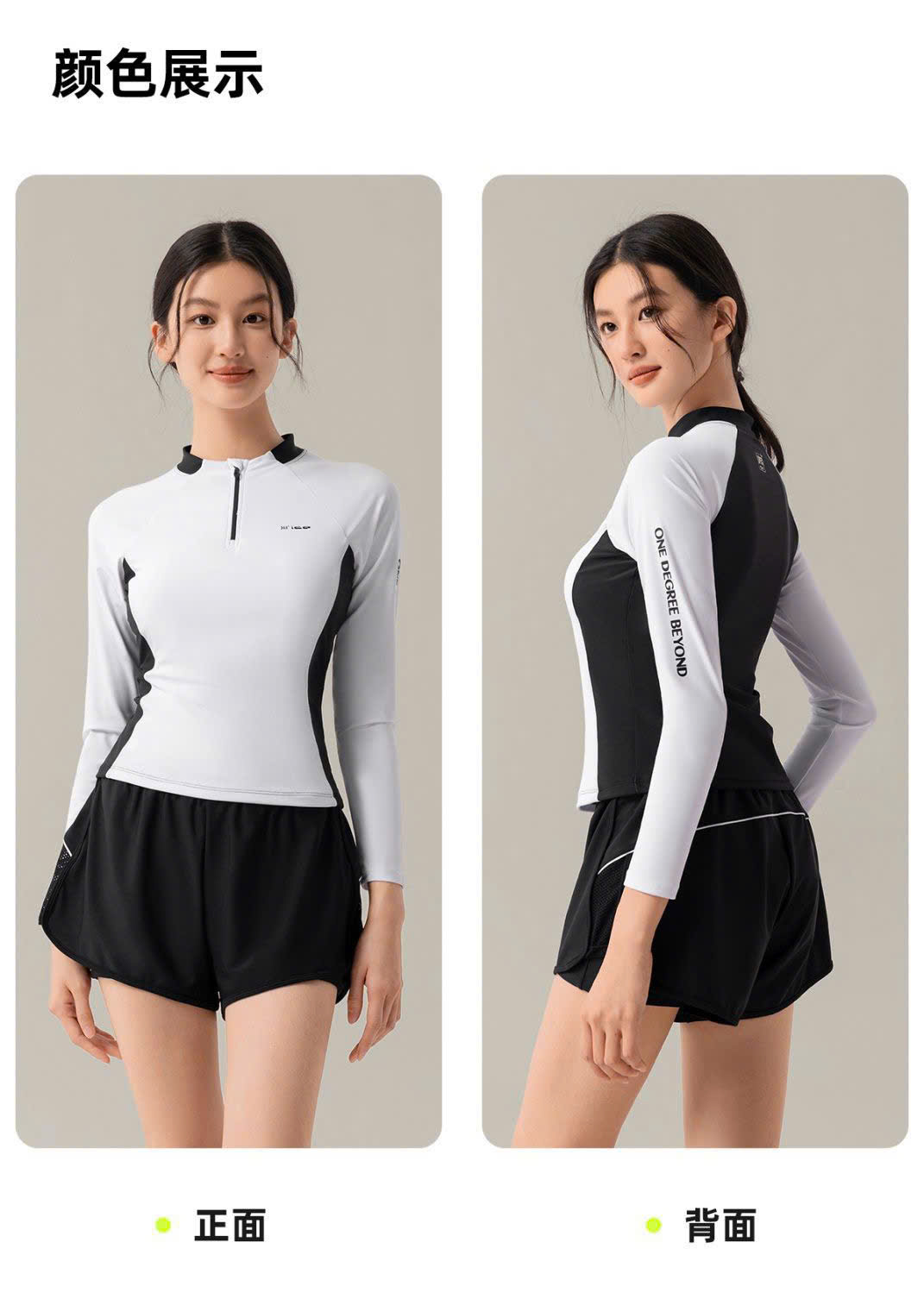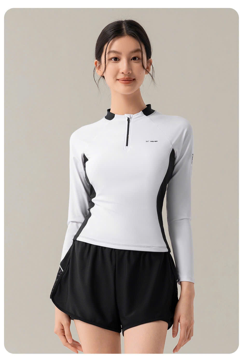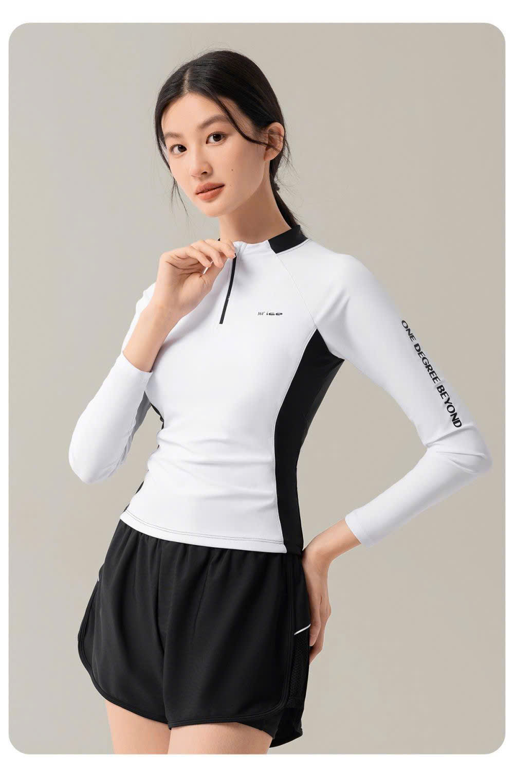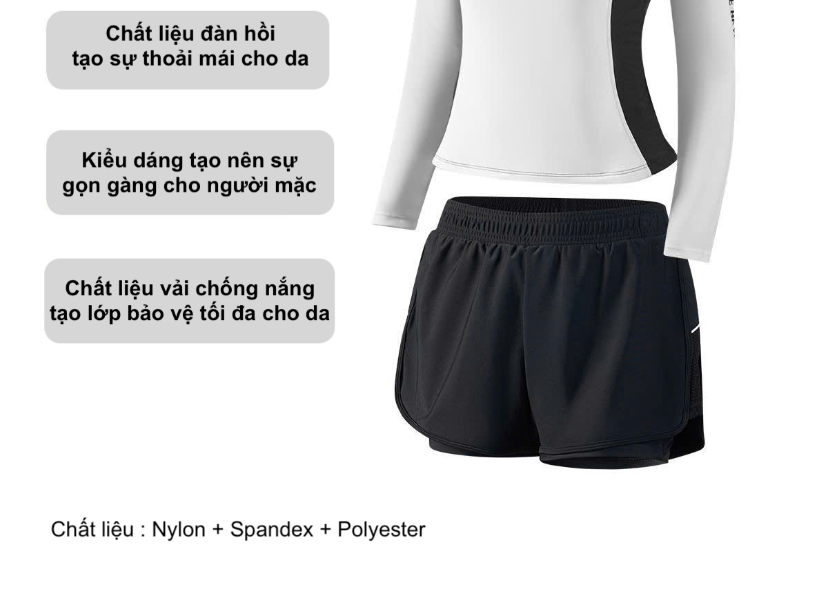 Bộ bơi nữ chống nắng UPF 50+, dài tay, kháng Clo, màu trắng, 361