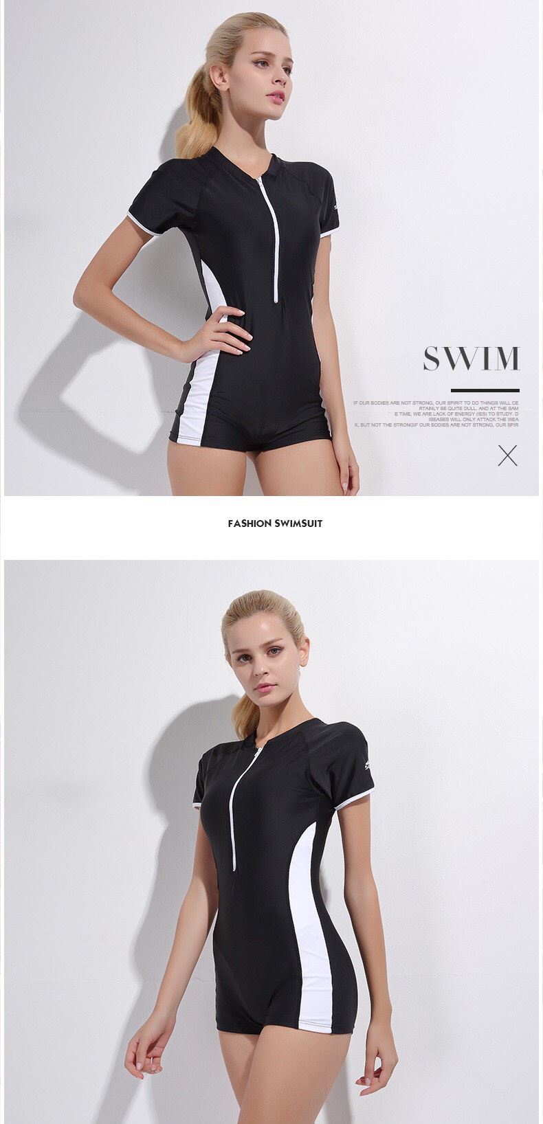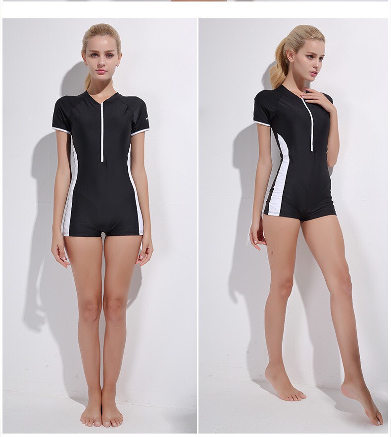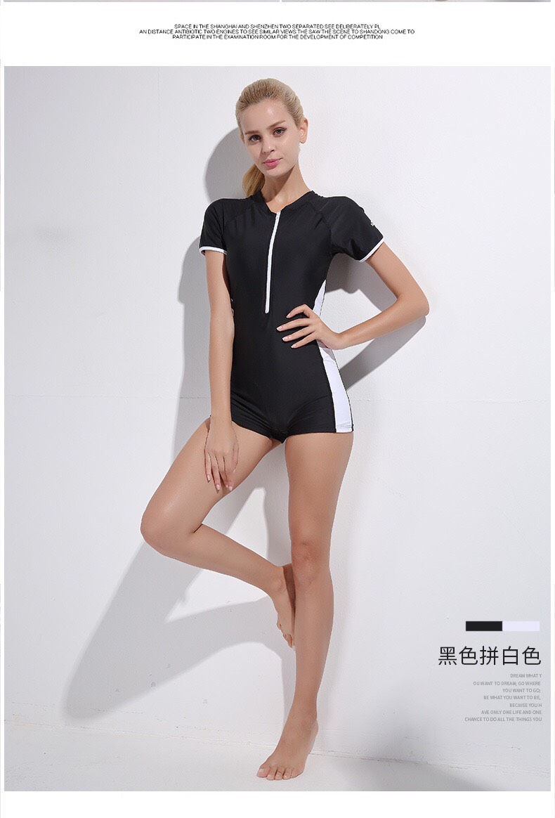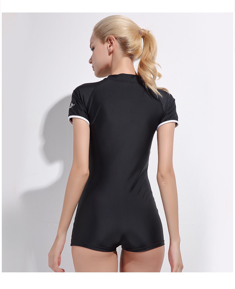 Bộ bơi nữ cộc tay, màu đen xám, dáng liền, vải UPF50+ Momasong