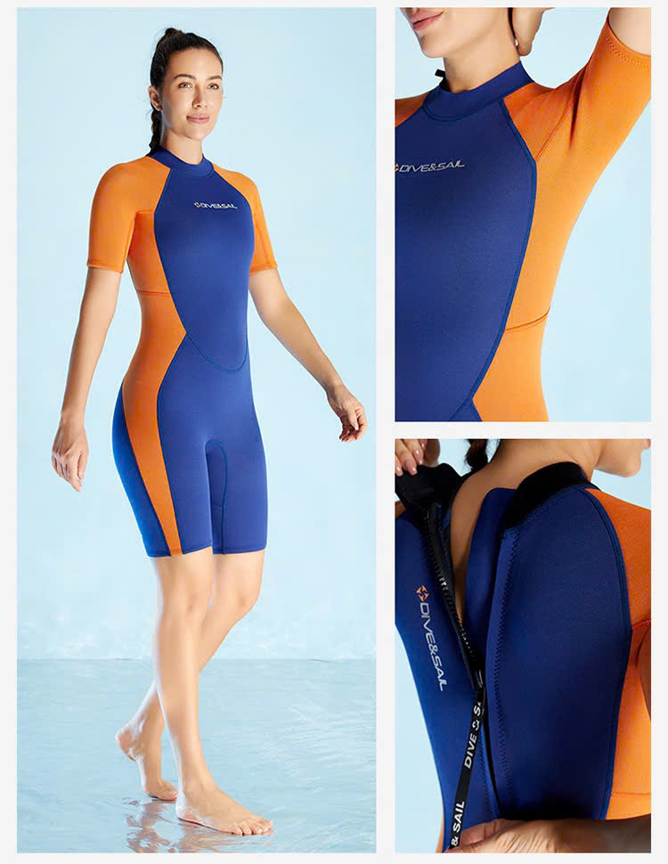 Bộ bơi nữ giữ nhiệt, dài tay, màu đen xanh, vải dày 1.5mm, Dive Sail
