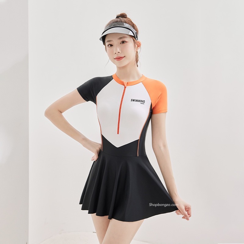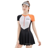 Bộ bơi nữ cộc liền chân váy, trắng cam, YouYou