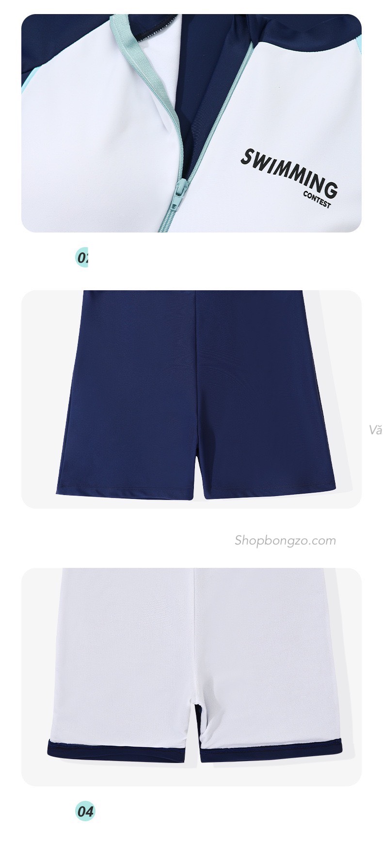 BỘ BƠI CHỐNG NẮNG Thương hiệu : 361 ( thương hiệu China xuất EU) Kiểu dáng : Dáng rời, quần 2 lớp Tính năng : Phù hợp cho các hoạt động như phơi nắng tắm biển/ bể bơi, trèo thuyền, lướt sóng, khoáng nóng … cũng như các hoạt động dưới nước Tác dụng : Chống 98% tia nắng có hại cho da, chỉ số UPF50++ Kháng Clo trong nước bể bơi Vải thoáng khí mau khô giúp cơ thể chống lạnh sau khi từ dưới nước lên ( chống hiện tượng nhiễm lạnh do ngấm ngược nước lạnh sau lên bờ) Bảo vệ da khỏi các sinh vật biển gây kích ứng như : sứa biển, sao biển,… Chống trầy sước da khi tham gia các hoạt động tập luyện và vận động ngoài trời Chất liệu : Vải chuyên dụng cho đồ bơi cao cấp Lycra (82% Nynol + 18% Spandex) Co giãn 4 chiều Vải kháng Clo và kháng khuẩn. Giúp da được bảo vệ tốt hơn khi bơi trong bể. Chất liệu tuân thủ tiêu chuẩn quốc tế loại A về quần áo trẻ sơ sinh và trẻ em Không chứa Fromaldehyd, huỳnh quang, và các chất có hại khác Vải xanh thân thiện với môi trường Thiết kế : Mặt trong khoá và đầu khoá kéo đều được lót vải mềm, mục đích tránh khoá tiếp xúc trực tiếp với da Áo có lót ngực Quy trình máy may 4 mũi kim 6 đường chỉ, tạo ra sự chắc chắn, hình thức đẹp, bảo đảm tuyệt đối không rách vải khi vận động Công nghệ in sử dụng keo đặc biệt dùng cho trang phục đồ lặn, rất chắc chắn, không phai màu và chống rách tuyệt đối Lưu ý sử dụng và bảo quản : Do bộ bơi chất liệu vải co giãn, thường có nhiều màu sắc sặc sỡ khác nhau. Để tăng tuổi thọ, tính năng cũng như mẫu mã của bộ bơi, khi sử dụng nên lưu ý những điều sau : Tránh các hoạt động có ma sát cao như cầu trượt,.. vì chất vải tự nhiên co giãn nhiều rất dễ làm hỏng kết cấu sợi vải Khi bơi xong nên giặt càng sớm càng tốt, vì nước biển có muối, bể bơi có chất clo, kem chống nắng, các loại dầu đều có thể làm giảm tính đàn hồi của vải bơi Nếu không có điều kiện giặt luôn bằng nước giặt thì cũng nên tráng bộ bơi qua nước sạch rồi để nơi cho giáo nước Khi bộ bơi chưa khô không nên để chung cùng quần áo khác Tốt nhất chỉ nên giặt bằng tay Tránh chất tẩy rửa mạnh (tốt nhất nên giặt bằng dầu gội hoặc sữa tắm ) Không phơi dưới ánh nắng trực tiếp Không là (ủi), sấy khô Đổi hàng trong 5 ngày sau khi nhận với lỗi của nhà sản xuất Chỉ nhận đổi hàng với sản phẩm chưa qua sử dụng Chỉ đổi sang các sản phẩm có giá trị bằng hoặc cao hơn Quý khách vui lòng chụp ảnh / quay video khi nhận hàng để được hỗ trợ tốt nhất. Vận Chuyển : Thời gian dự kiến 2-5 ngày (tuỳ khu vực ) sau khi shop giao cho đơn vị vẩn chuyển Đối với khách tại các quận nội thành Hà Nội muốn giao gấp (1-2 tiếng), nhận hàng trong ngày, lên đơn Hoả Tốc. Sau khi lên đơn bấm mục Theo Dõi Đơn Hàng để xem thời gian và quá trình nhận Bongzo - Cam kết chỉ bán hàng CHÍNH HÃNG Xem hàng trực tiếp tại : 25 Nguyễn Chí Thanh / Ba Đình / Hà Nội Ship toàn quốc, nhận hàng kiểm tra trước Nhận hàng kiểm tra trước khi thanh toán web : https://shopbongzo.com Hotline / Zalo : 094 6886 012 - 034 994 0705 Map shop : https://maps.app.goo.gl/N1WBJNvGUfo6o1jp7?g_st=com.google.maps.preview.copy465.000₫ -