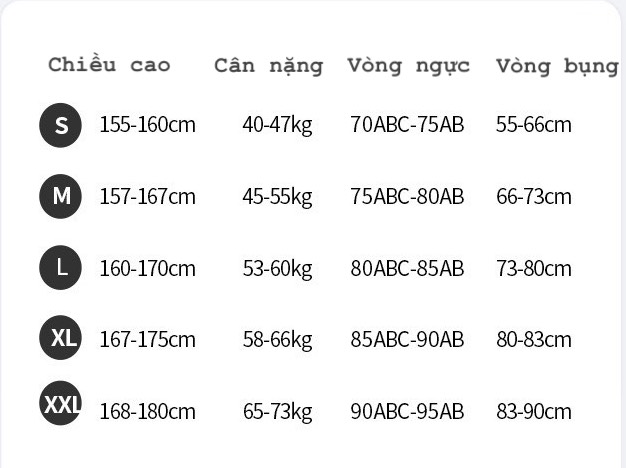 * Bảng size dựa trên thực tế bán hàng, khách trực tiếp qua shop thử đồ.