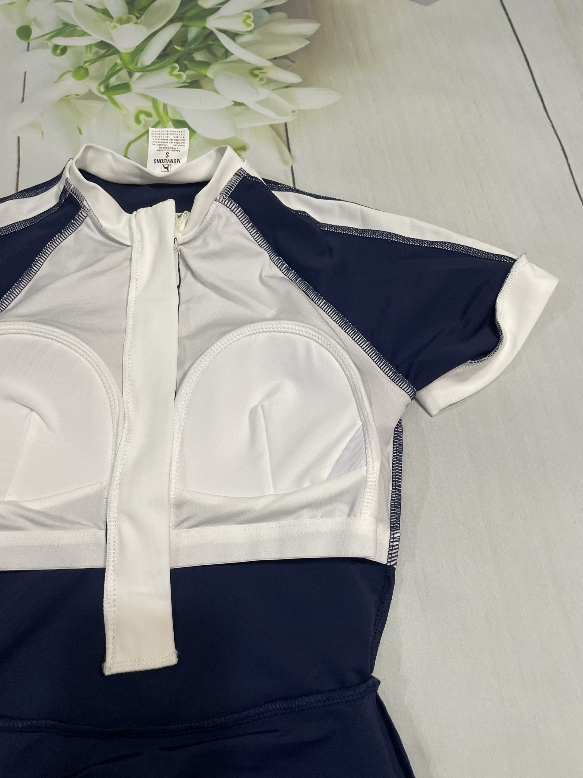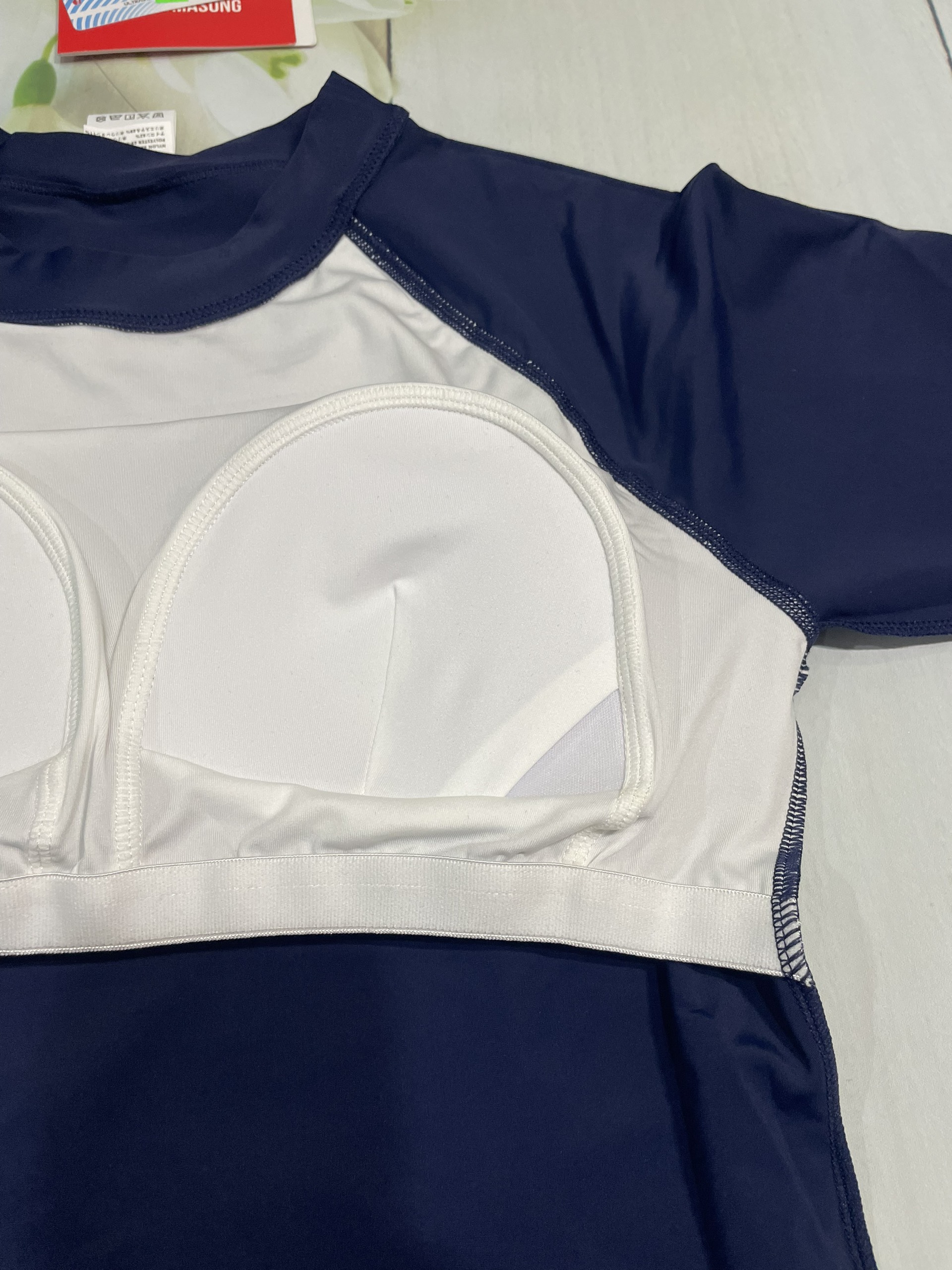 - Kiểu dáng : dán liền, áo cộc liền chân váy, bên trong liền quần. Áo có lót ngực bên trong, có thể dễ dàng tháo rời khi giặt bộ bơi.