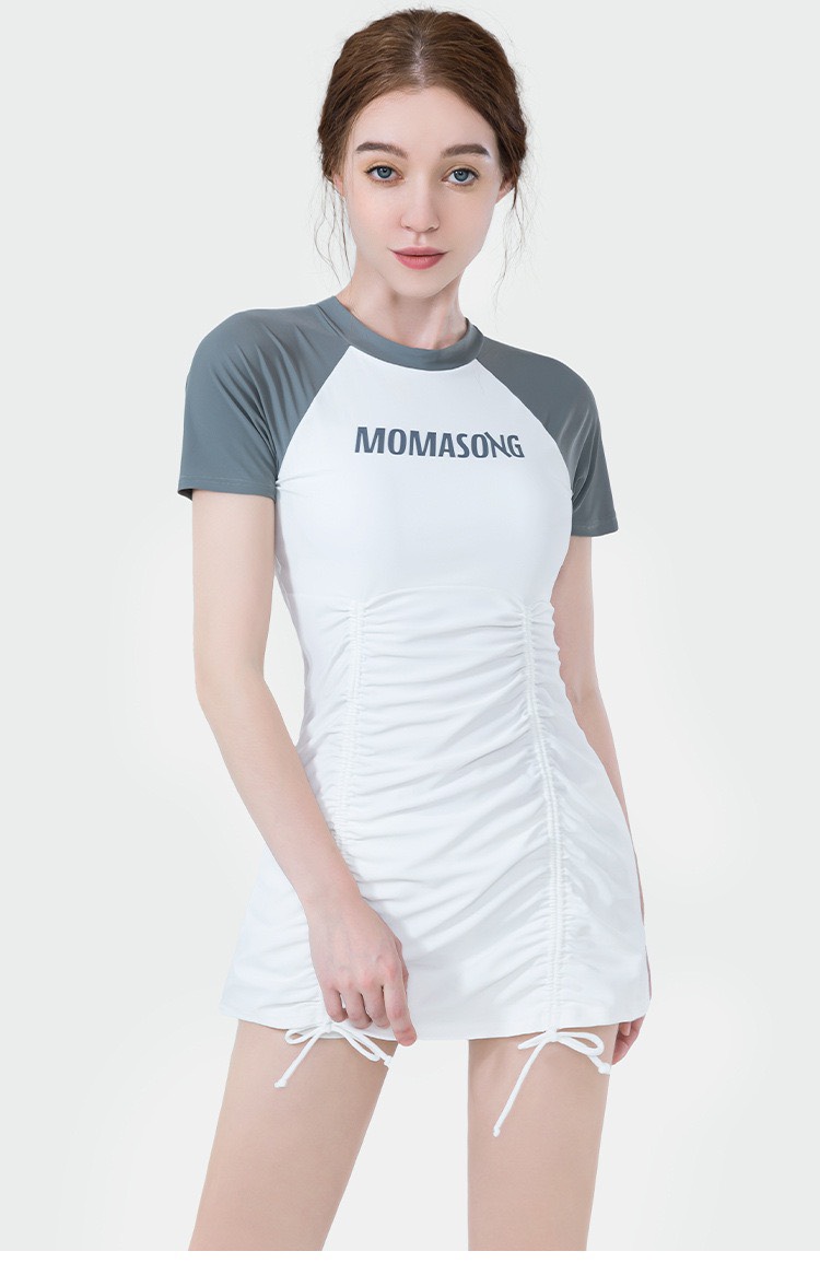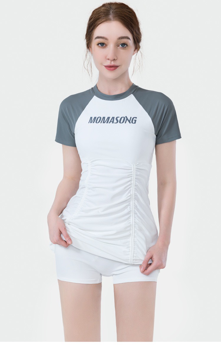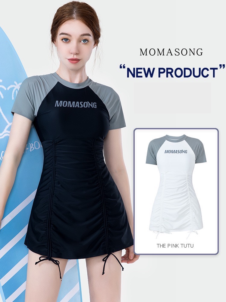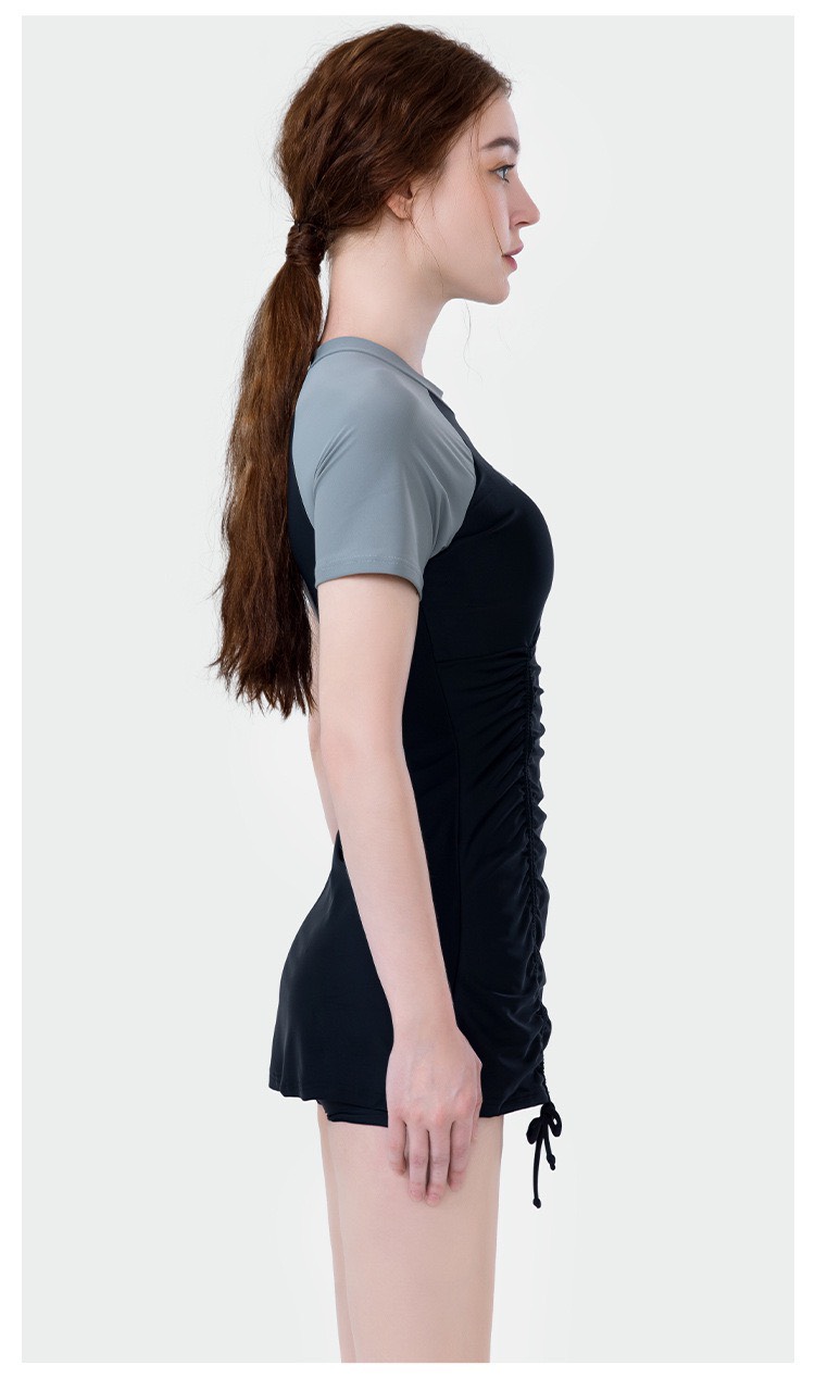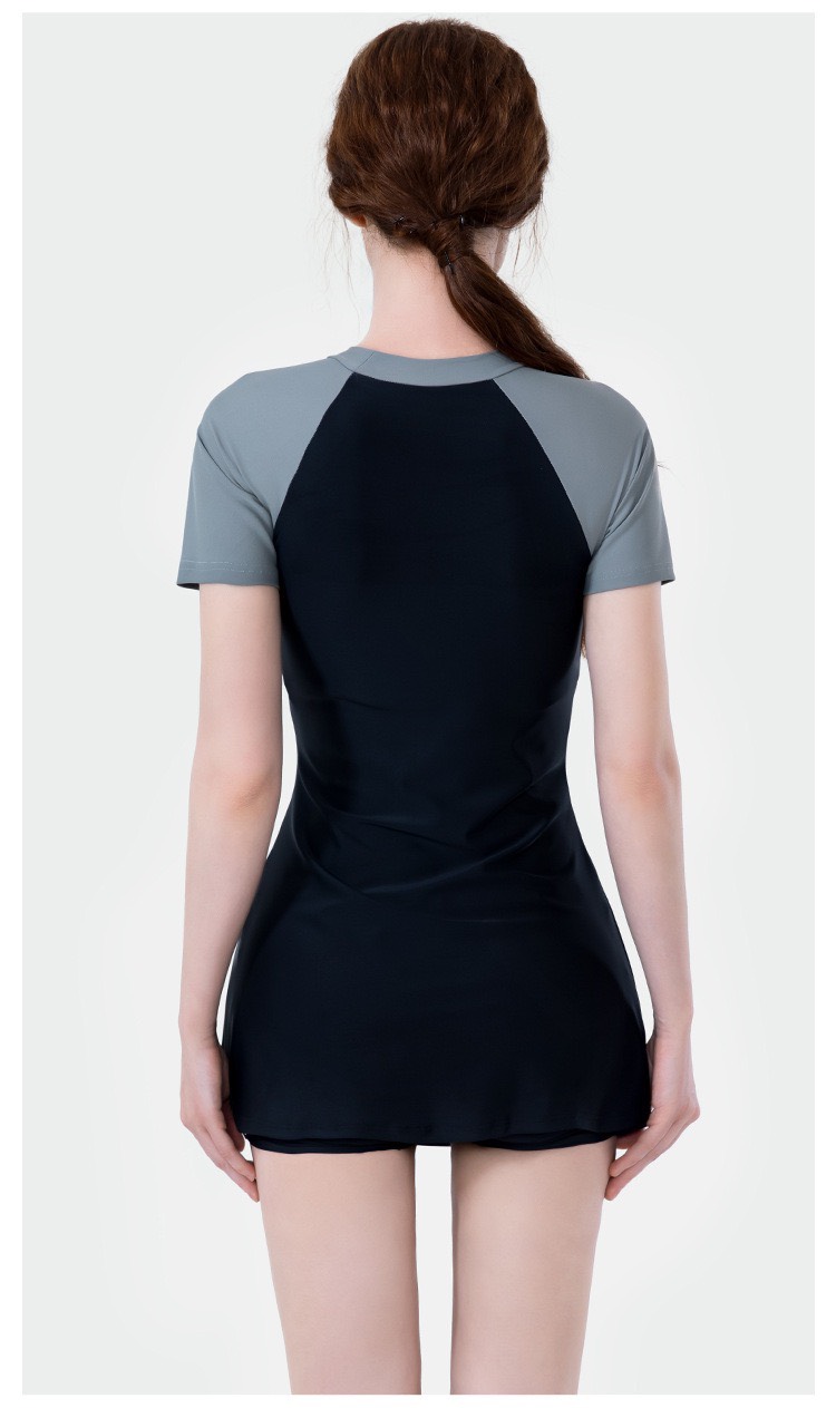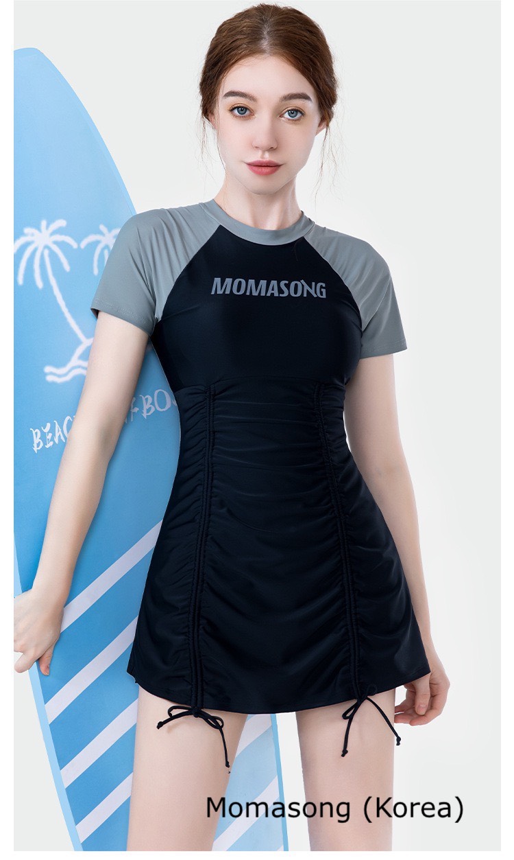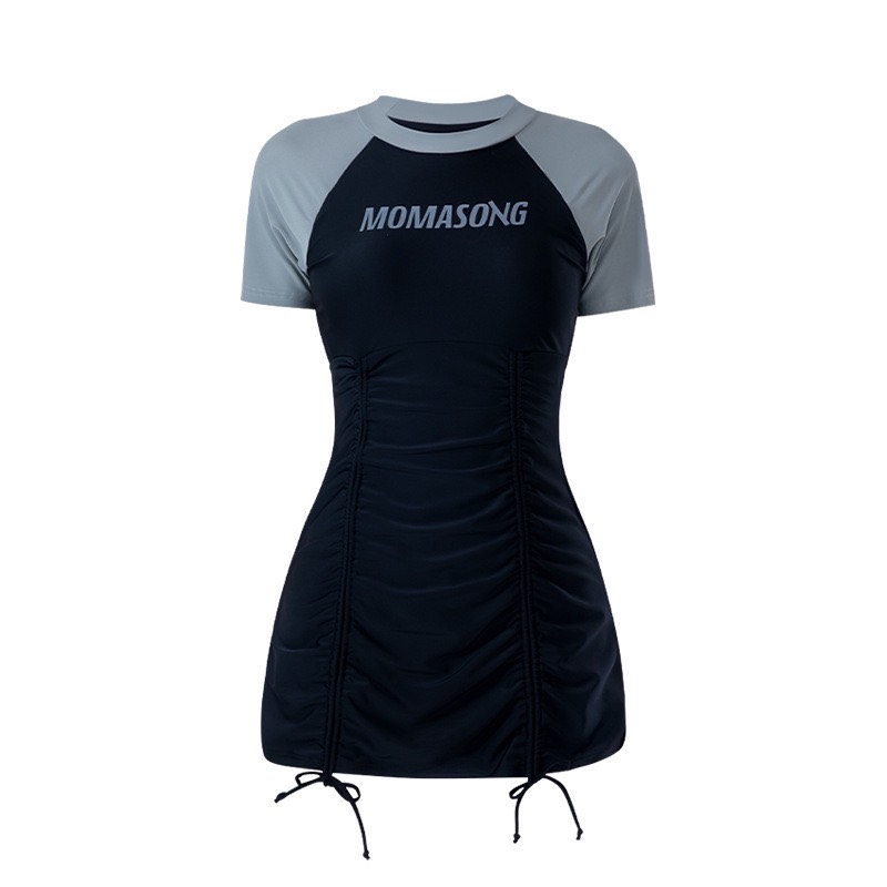 Bộ bơi nữ cộc tay, màu đen xám, dáng liền, vải UPF50+ Momasong