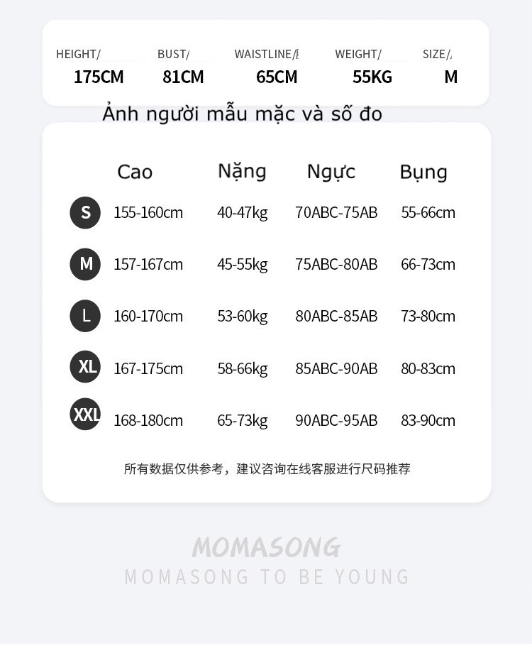 Thương hiệu : Momasong (Korea) Kiểu dáng : dáng liền, áo có lọt ngực, khoá trước. Tính năng : Điệu đà nữ tính Phù hợp cho các bạn nữ thích chụp ảnh tạo dáng…và các hoạt động như phơi nắng tắm biển/ bể bơi, trèo thuyền, lướt sóng … cũng như các hoạt động dưới nước Tác dụng : Chống 98% tia nắng có hại cho da, chỉ số UPF50++ Vải thoáng khí mau khô giúp cơ thể chống lạnh sau khi từ dưới nước lên ( chống hiện tượng nhiễm lạnh do ngấm ngược nước lạnh sau lên bờ) Bảo vệ da khỏi các sinh vật biển gây kích ứng như : sứa biển, sao biển,… Chống trầy sước da khi tham gia các hoạt động tập luyện và vận động ngoài trời Chất liệu : Vải chuyên dụng cho đồ bơi cao cấp Lycra (82% Nynol + 18% Spandex) Vải kháng Clo và kháng khuẩn. Giúp da được bảo vệ tốt hơn khi bơi trong bể. Thiết kế : Khoá kéo trước, mặt trong khoá và đầu khoá kéo đều được lót vải mềm, mục đích tránh khoá tiếp xúc trực tiếp với da Quy trình máy may 4 mũi kim 6 đường chỉ, tạo ra sự chắc chắn, hình thức đẹp, bảo đảm tuyệt đối không rách vải khi vận động Công nghệ in sử dụng keo đặc biệt dùng cho trang phục đồ lặn, rất chắc chắn, không phai màu và chống rách tuyệt đối Lưu ý sử dụng và bảo quản : Do bộ bơi chất liệu vải co giãn, thường có nhiều màu sắc sặc sỡ khác nhau. Để tăng tuổi thọ, tính năng cũng như mẫu mã của bộ bơi, khi sử dụng nên lưu ý những điều sau : Tránh các hoạt động có ma sát cao như cầu trượt,.. vì chất vải tự nhiên co giãn nhiều rất dễ làm hỏng kết cấu sợi vải Khi bơi xong nên giặt càng sớm càng tốt, vì nước biển có muối, bể bơi có chất clo, kem chống nắng, các loại dầu đều có thể làm giảm tính đàn hồi của vải bơi Nếu không có điều kiện giặt luôn bằng nước giặt thì cũng nên tráng bộ bơi qua nước sạch rồi để nơi cho giáo nước Khi bộ bơi chưa khô không nên để chung cùng quần áo khác Tốt nhất chỉ nên giặt bằng tay Tránh chất tẩy rửa mạnh (tốt nhất nên giặt bằng dầu gội hoặc sữa tắm ) Không phơi dưới ánh nắng trực tiếp Không là (ủi), sấy khô Đổi hàng trong 5 ngày sau khi nhận với lỗi của nhà sản xuất Chỉ nhận đổi hàng với sản phẩm chưa qua sử dụng Chỉ đổi sang các sản phẩm có giá trị bằng hoặc cao hơn Quý khách vui lòng chụp ảnh / quay video khi nhận hàng để được hỗ trợ tốt nhất. Vận Chuyển : Thời gian dự kiến 2-5 ngày (tuỳ khu vực ) sau khi shop giao cho đơn vị vẩn chuyển Đối với khách tại các quận nội thành Hà Nội muốn giao gấp (1-2 tiếng), nhận hàng trong ngày, lên đơn Hoả Tốc. Sau khi lên đơn bấm mục Theo Dõi Đơn Hàng để xem thời gian và quá trình nhận Bongzo - Cam kết chỉ bán hàng CHÍNH HÃNG. LH & ra lo : ko chín bốn , sáu tám , tám sáu , ko một hai439.000₫
