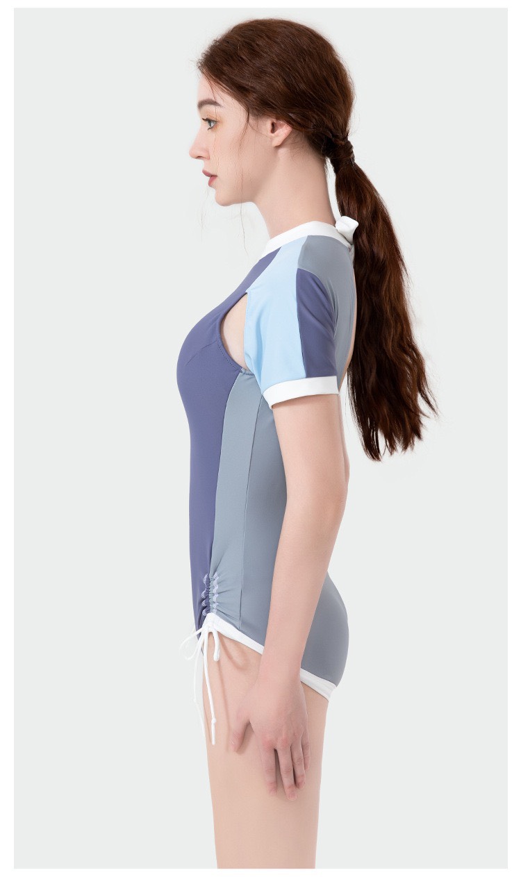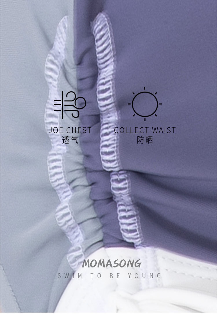 Bộ bơi nữ cộc xanh tím nhạt, vải cao cấp, hãng Momasong