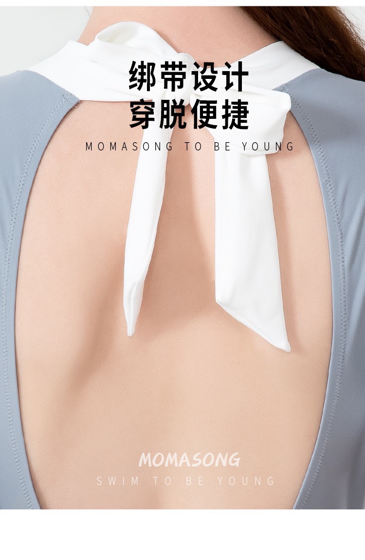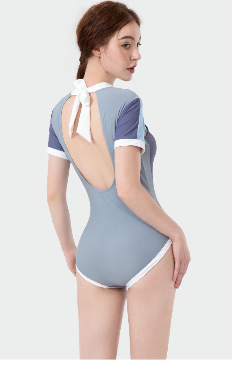 Bộ bơi nữ cộc tay, màu đen xám, dáng liền, vải UPF50+ Momasong