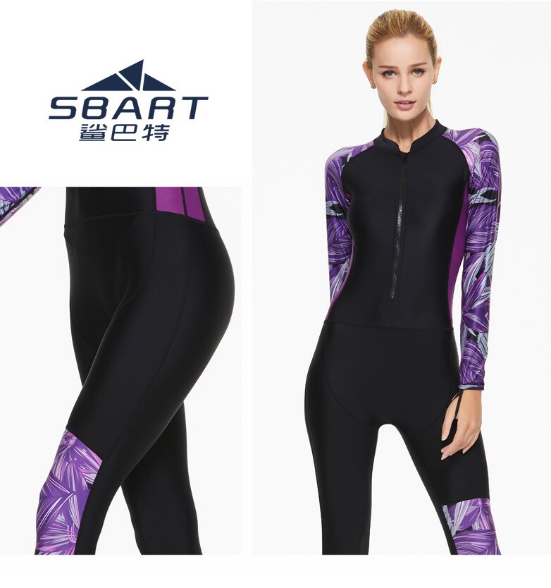 Bộ bơi nữ dài tay, vải cao cấp chống nắng, màu đen tím, Sbart 1192