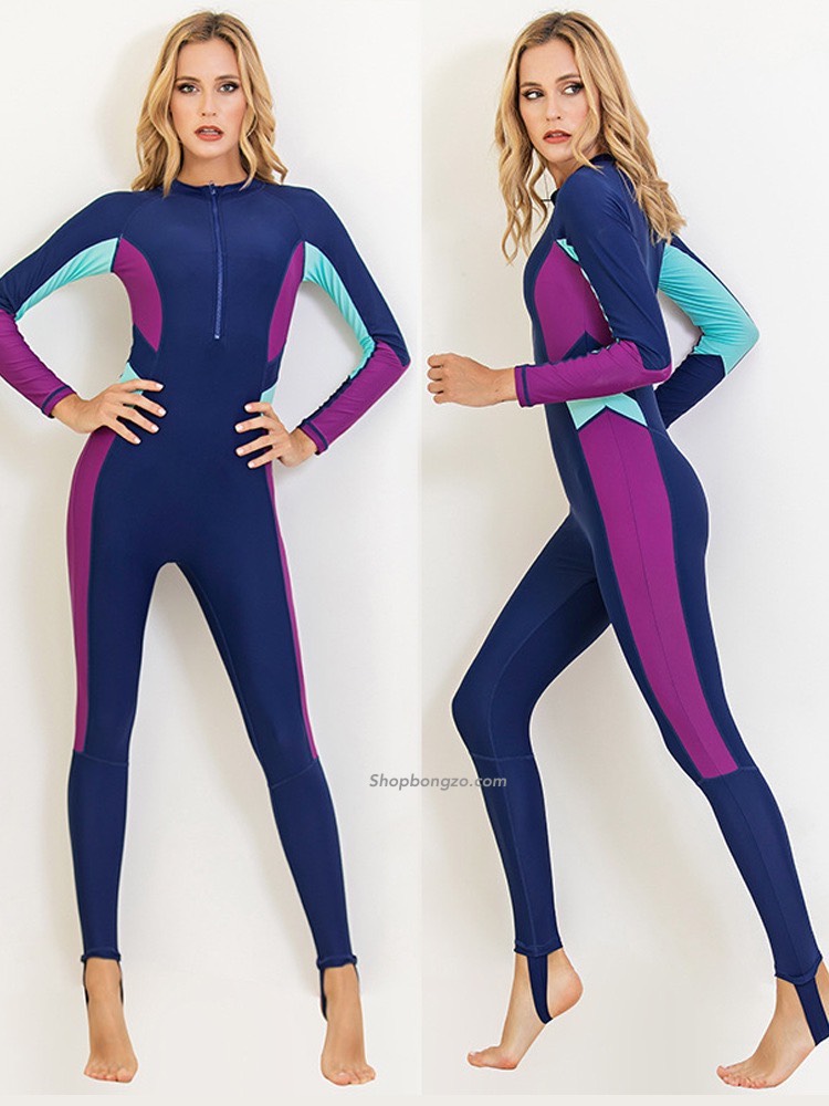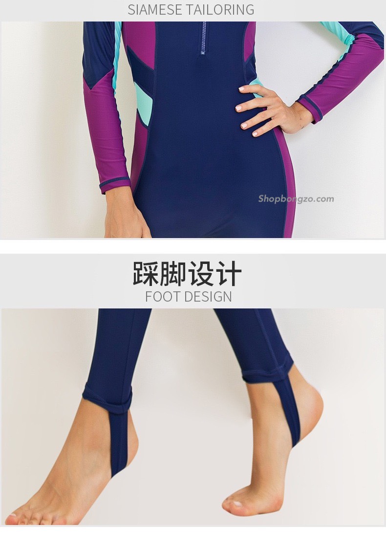 - Kiểu dáng : bộ bơi dáng liền dài, có kéo khoá trước, quần có dẫm gót.