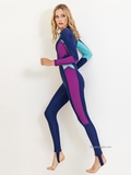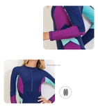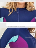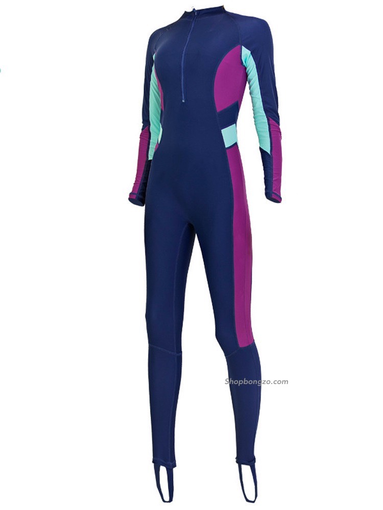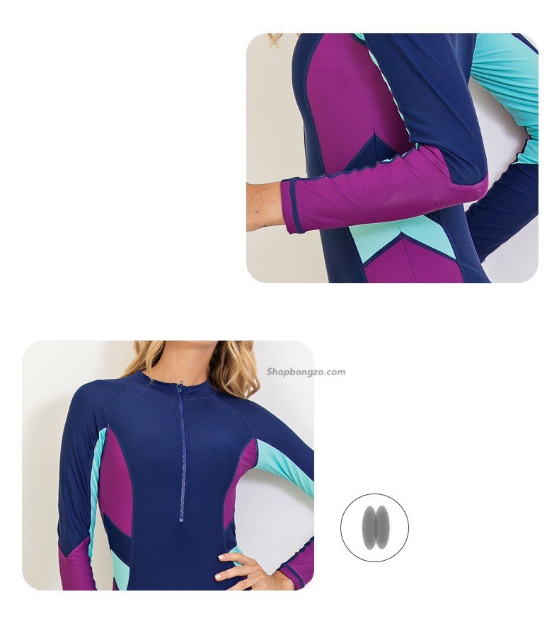 Bộ bơi nữ dài liền, xanh than, tay tím, vải chống nắng, Sbart 1374