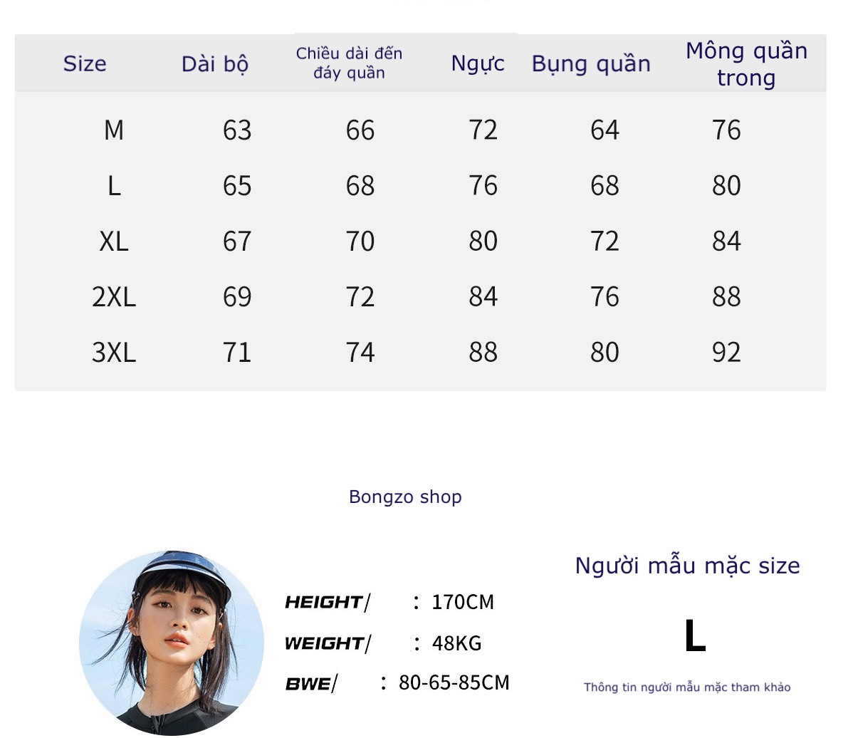 Thương hiệu : Momasong (Korea) Kiểu dáng : dáng liền, áo có lọt ngực, khoá trước. Tính năng : Điệu đà nữ tính Phù hợp cho các bạn nữ thích chụp ảnh tạo dáng…và các hoạt động như phơi nắng tắm biển/ bể bơi, trèo thuyền, lướt sóng … cũng như các hoạt động dưới nước Tác dụng : Chống 98% tia nắng có hại cho da, chỉ số UPF50++ Vải thoáng khí mau khô giúp cơ thể chống lạnh sau khi từ dưới nước lên ( chống hiện tượng nhiễm lạnh do ngấm ngược nước lạnh sau lên bờ) Bảo vệ da khỏi các sinh vật biển gây kích ứng như : sứa biển, sao biển,… Chống trầy sước da khi tham gia các hoạt động tập luyện và vận động ngoài trời Chất liệu : Vải chuyên dụng cho đồ bơi cao cấp Lycra (82% Nynol + 18% Spandex) Vải kháng Clo và kháng khuẩn. Giúp da được bảo vệ tốt hơn khi bơi trong bể. Thiết kế : Khoá kéo trước, mặt trong khoá và đầu khoá kéo đều được lót vải mềm, mục đích tránh khoá tiếp xúc trực tiếp với da Quy trình máy may 4 mũi kim 6 đường chỉ, tạo ra sự chắc chắn, hình thức đẹp, bảo đảm tuyệt đối không rách vải khi vận động Công nghệ in sử dụng keo đặc biệt dùng cho trang phục đồ lặn, rất chắc chắn, không phai màu và chống rách tuyệt đối Lưu ý sử dụng và bảo quản : Do bộ bơi chất liệu vải co giãn, thường có nhiều màu sắc sặc sỡ khác nhau. Để tăng tuổi thọ, tính năng cũng như mẫu mã của bộ bơi, khi sử dụng nên lưu ý những điều sau : Tránh các hoạt động có ma sát cao như cầu trượt,.. vì chất vải tự nhiên co giãn nhiều rất dễ làm hỏng kết cấu sợi vải Khi bơi xong nên giặt càng sớm càng tốt, vì nước biển có muối, bể bơi có chất clo, kem chống nắng, các loại dầu đều có thể làm giảm tính đàn hồi của vải bơi Nếu không có điều kiện giặt luôn bằng nước giặt thì cũng nên tráng bộ bơi qua nước sạch rồi để nơi cho giáo nước Khi bộ bơi chưa khô không nên để chung cùng quần áo khác Tốt nhất chỉ nên giặt bằng tay Tránh chất tẩy rửa mạnh (tốt nhất nên giặt bằng dầu gội hoặc sữa tắm ) Không phơi dưới ánh nắng trực tiếp Không là (ủi), sấy khô Đổi hàng trong 5 ngày sau khi nhận với lỗi của nhà sản xuất Chỉ nhận đổi hàng với sản phẩm chưa qua sử dụng Chỉ đổi sang các sản phẩm có giá trị bằng hoặc cao hơn Quý khách vui lòng chụp ảnh / quay video khi nhận hàng để được hỗ trợ tốt nhất. Vận Chuyển : Thời gian dự kiến 2-5 ngày (tuỳ khu vực ) sau khi shop giao cho đơn vị vẩn chuyển Đối với khách tại các quận nội thành Hà Nội muốn giao gấp (1-2 tiếng), nhận hàng trong ngày, lên đơn Hoả Tốc. Sau khi lên đơn bấm mục Theo Dõi Đơn Hàng để xem thời gian và quá trình nhận Bongzo - Cam kết chỉ bán hàng CHÍNH HÃNG. LH & ra lo : ko chín bốn , sáu tám , tám sáu , ko một hai439.000₫