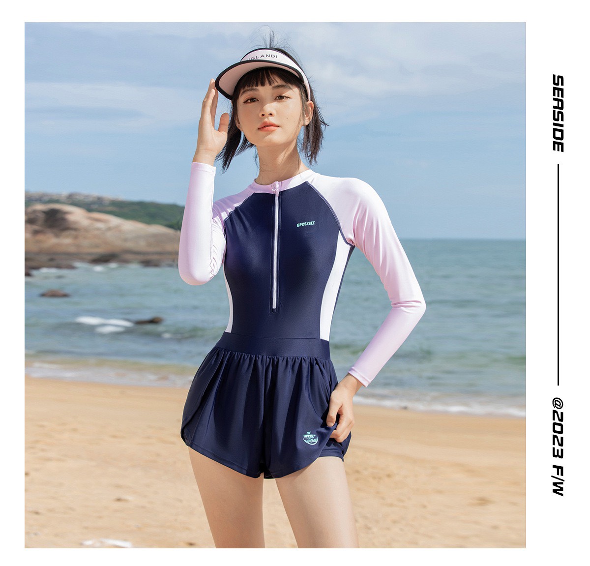 Bộ bơi nữ chống nắng UPF 50+, dài tay, kháng Clo, màu trắng, 361
