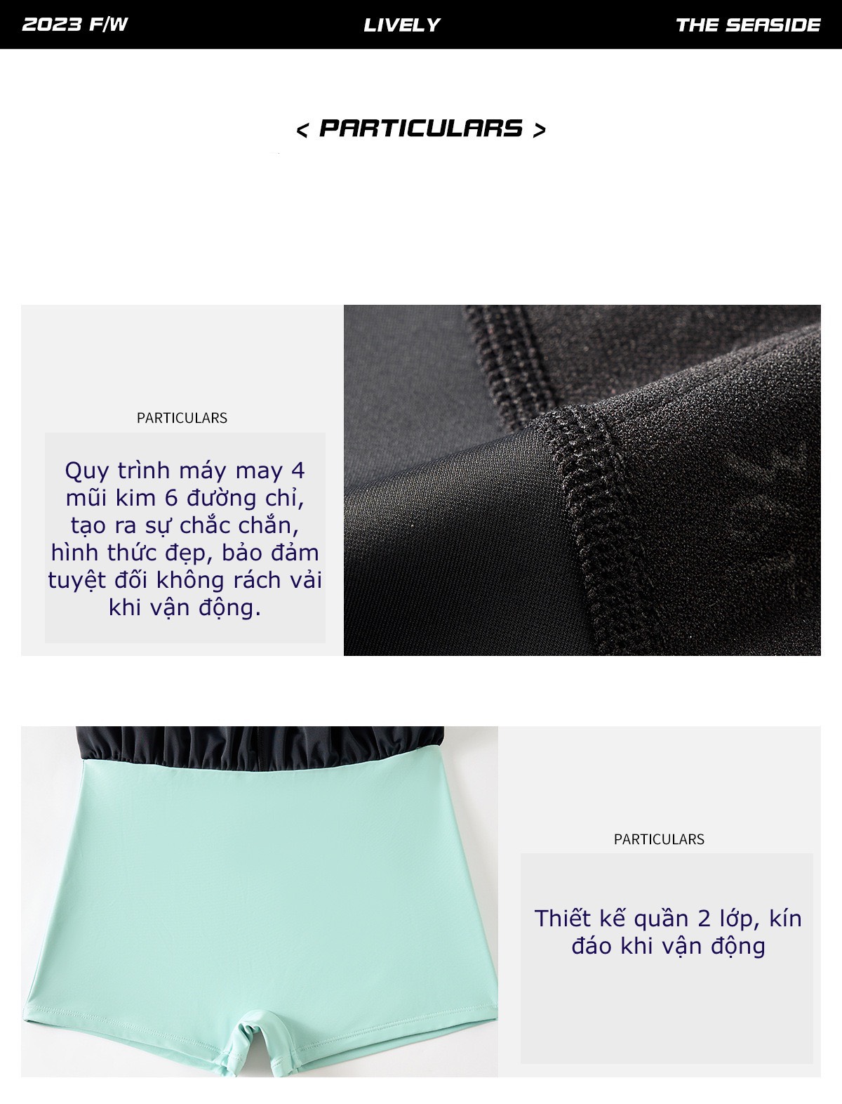 Kiểu dáng : dáng liền, quần 2 lớp, quần bên trong dáng đùi.