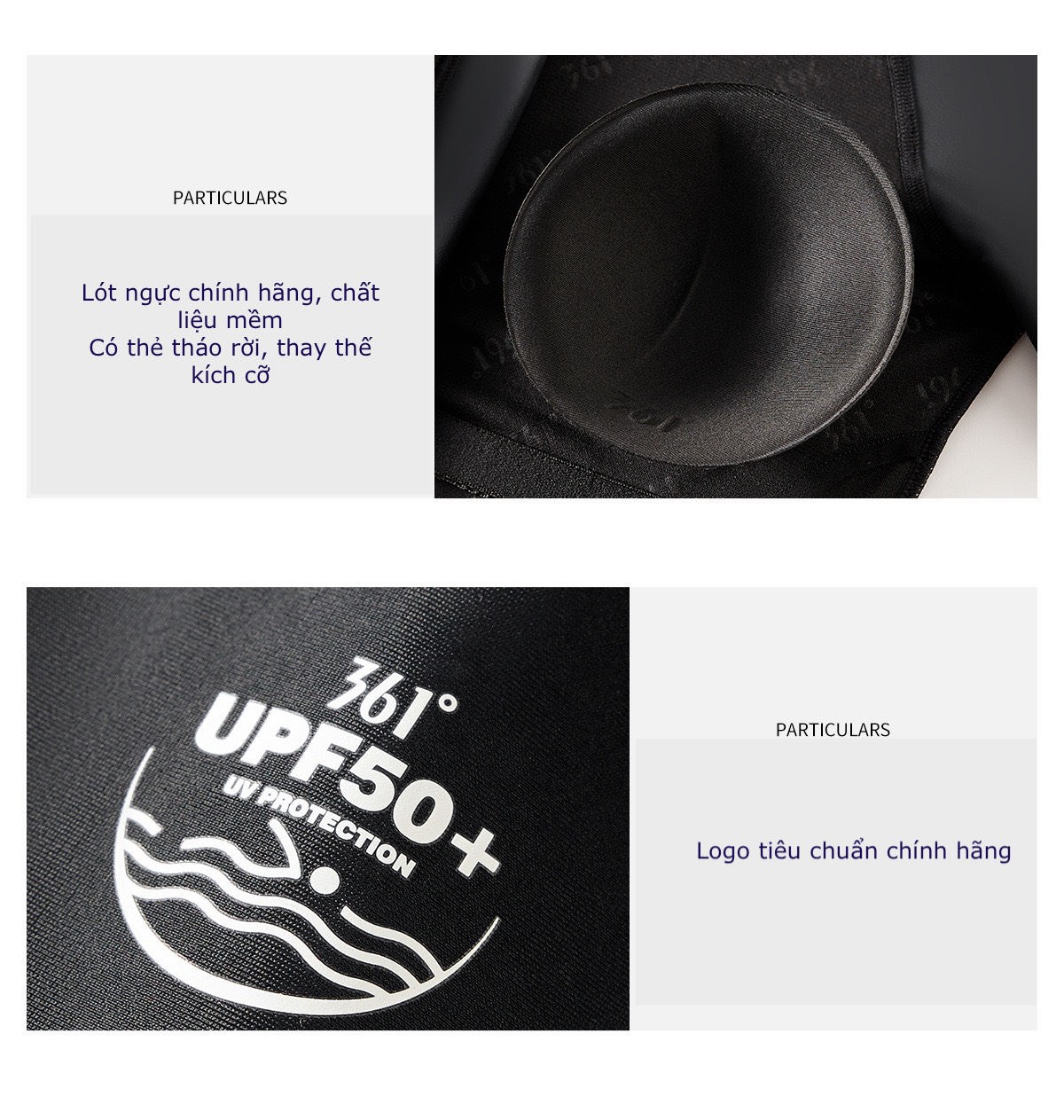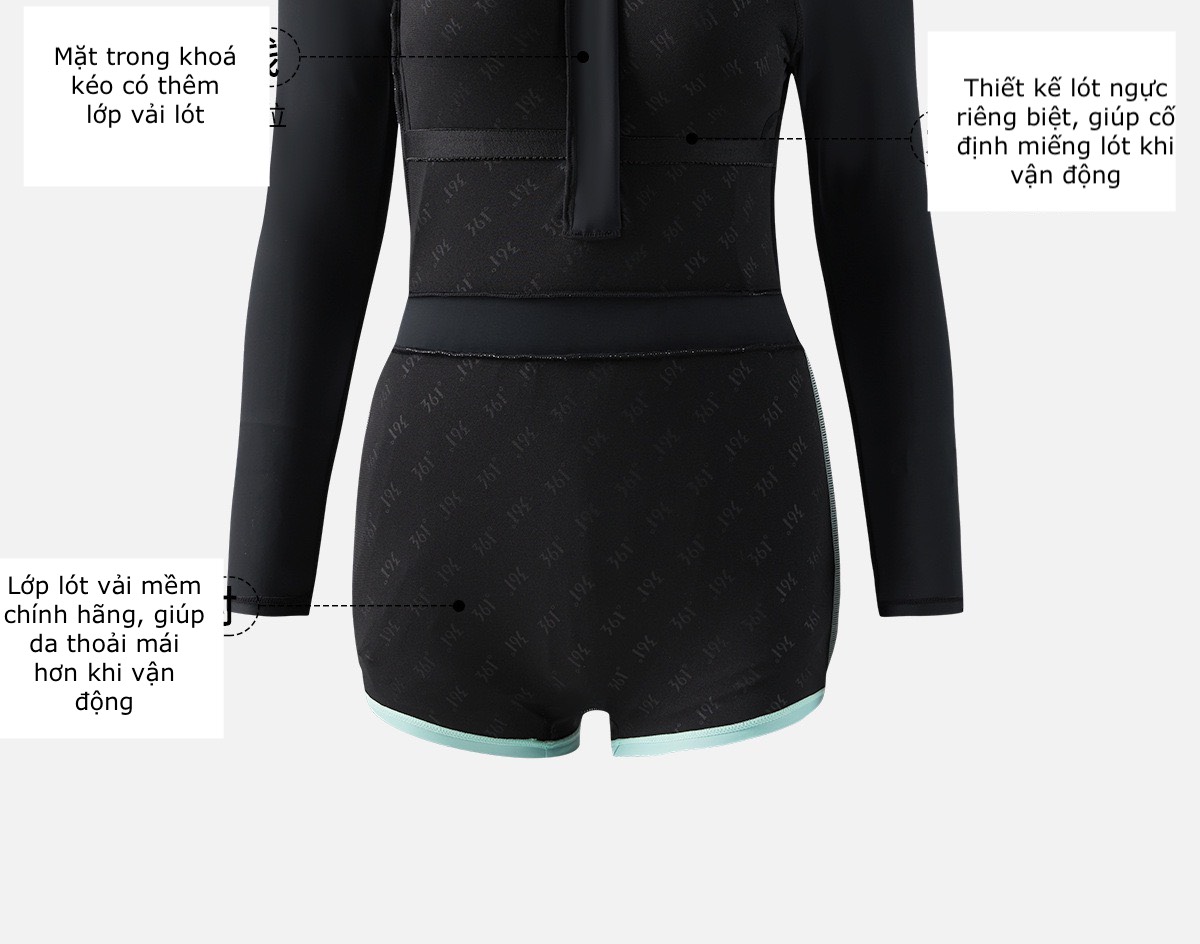 Bộ bơi nữ chống nắng UPF 50+, dài tay, kháng Clo, màu đen, 361