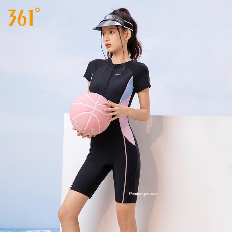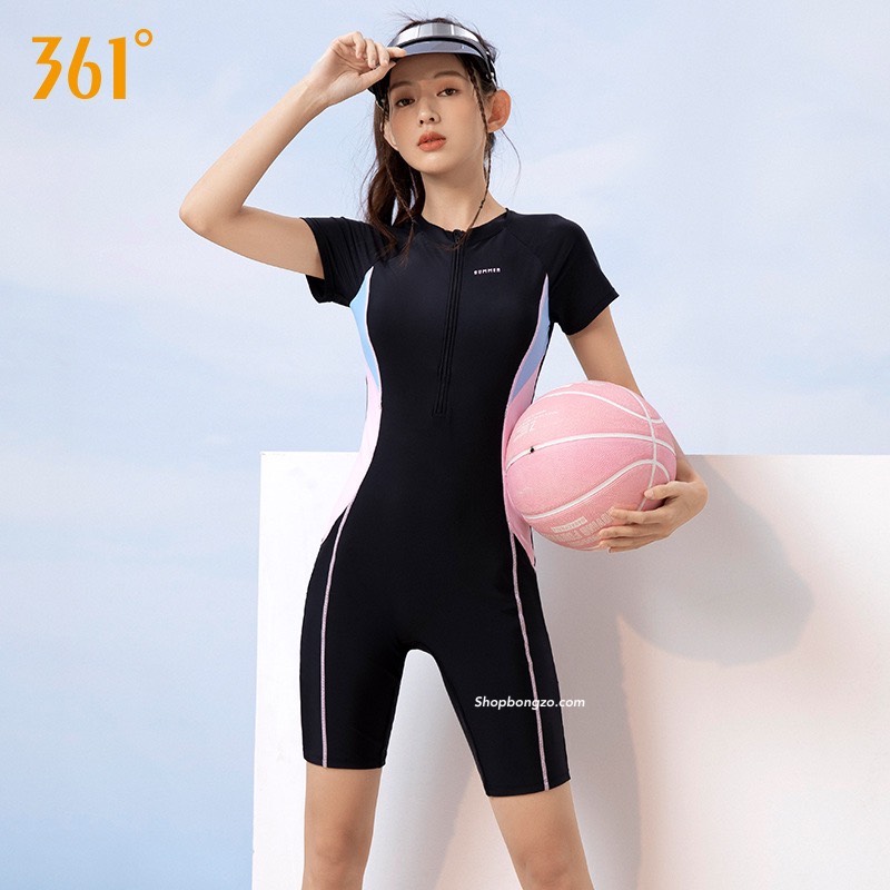 Bộ bơi nữ đen cộc liền, sumer, vải cao cấp chống nắng, hãng 361