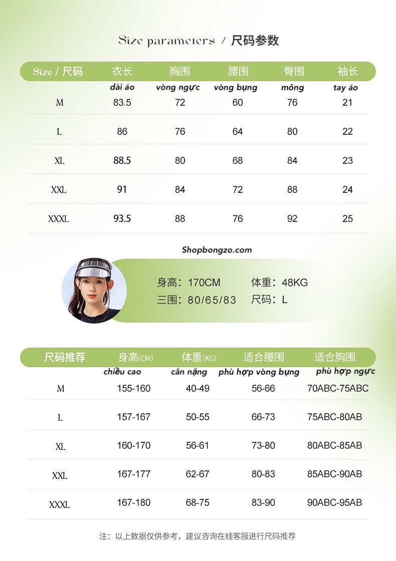 * Bảng size dựa trên thực tế bán hàng, khách trực tiếp qua shop thử đồ.
