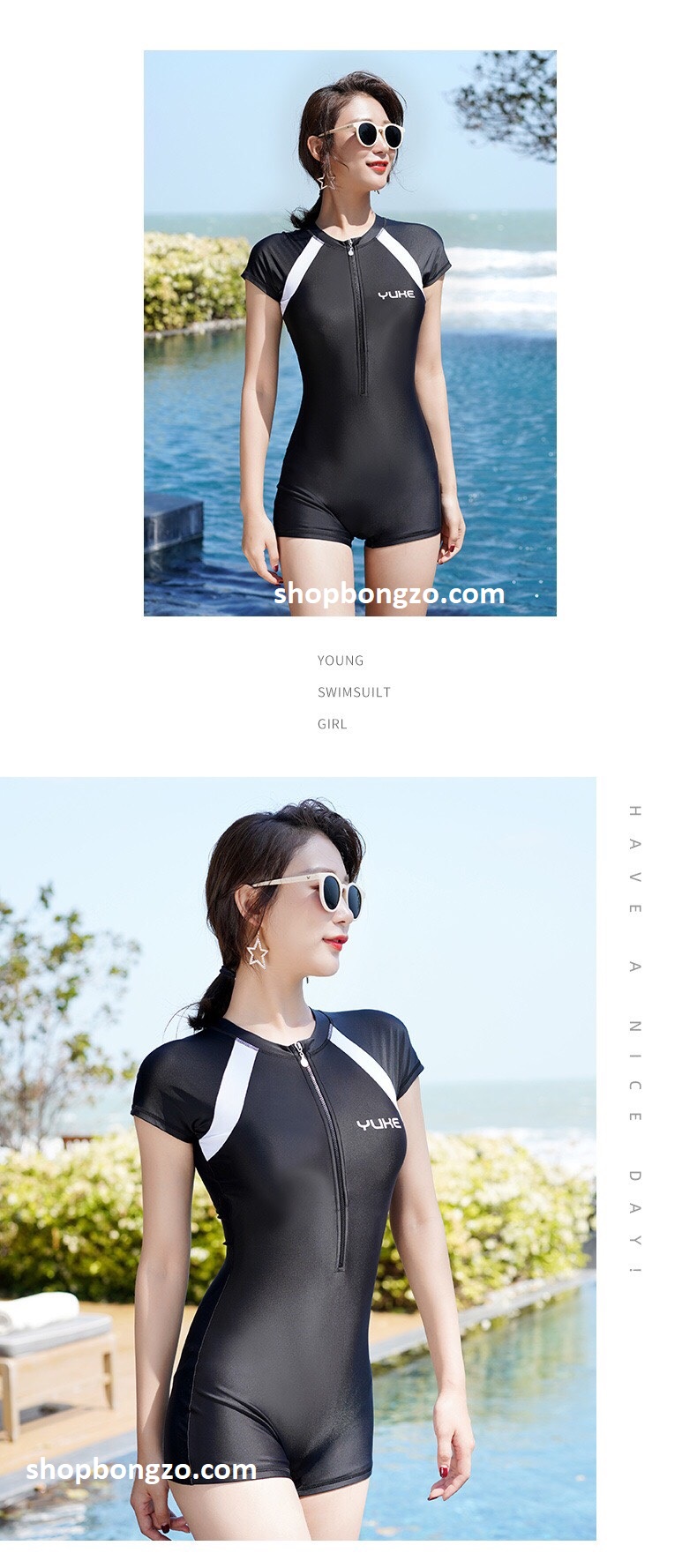 Bộ bơi nữ Đen cộc tay, quần cộc dáng liền