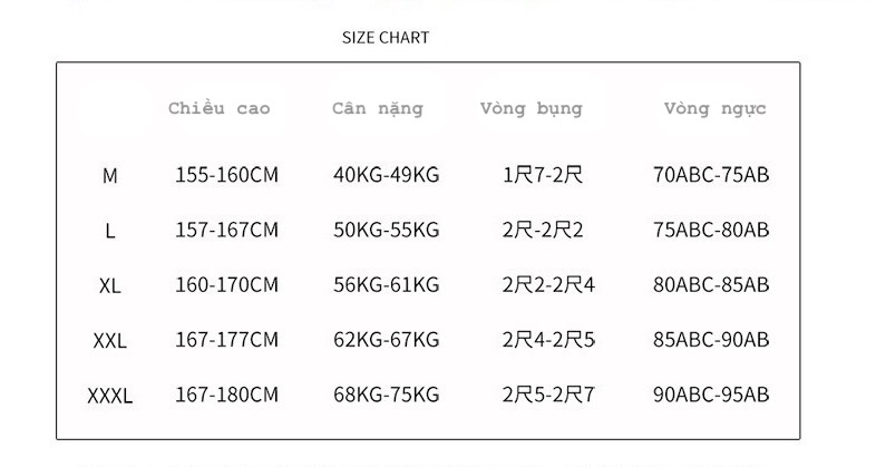 * Bảng size dựa trên thực tế bán hàng, khách trực tiếp qua shop thử đồ.