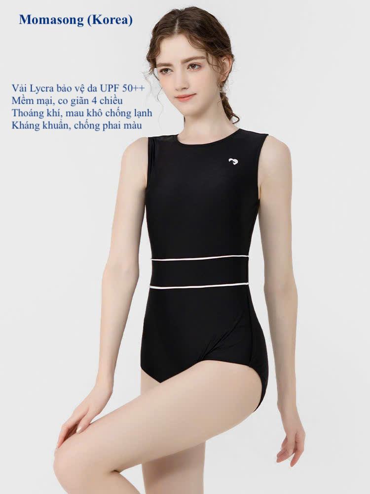 Bộ bơi nữ sát nách, màu đen, vải UPF50+ Momasong