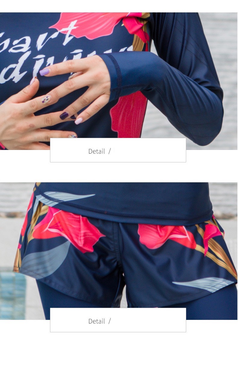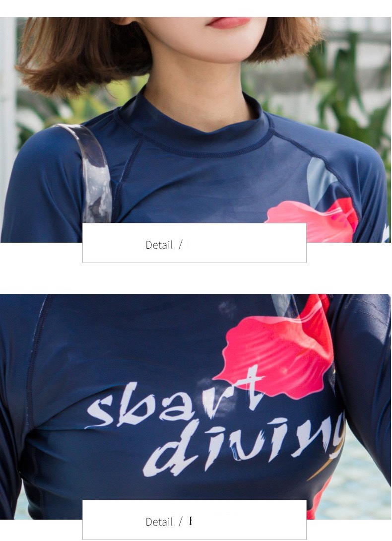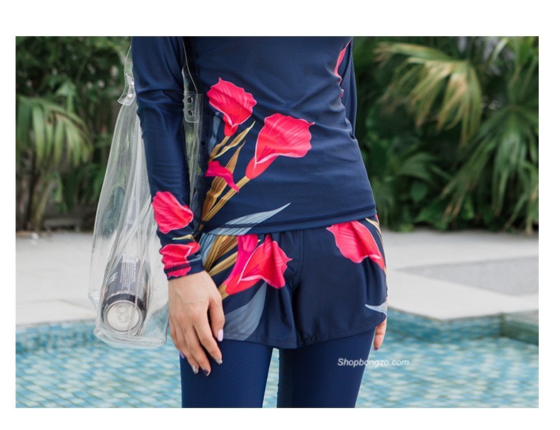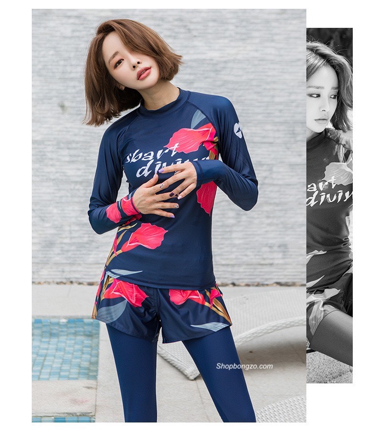 Bộ bơi nữ than hồng, hình hoa, dài tay quần cộc, Sbart D155