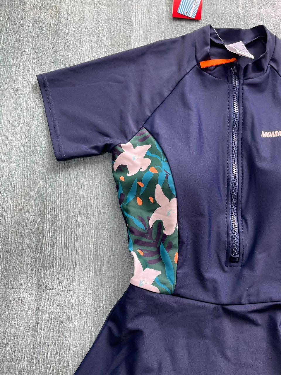Bộ bơi nữ cộc tay, màu đen xám, dáng liền, vải UPF50+ Momasong