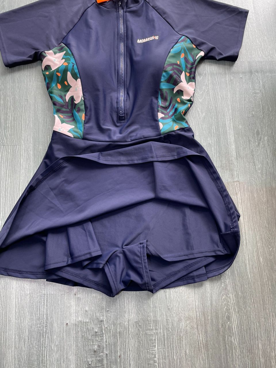 Bộ bơi nữ cộc tay liền chân váy, màu xanh than, Momasong -906073