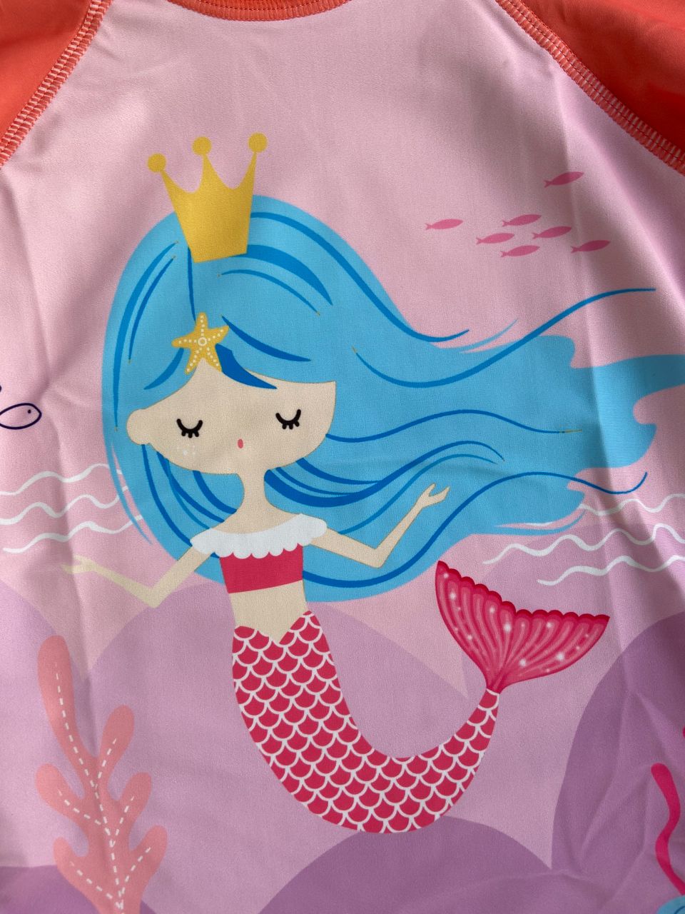 Bộ bơi bé gái dài tay, vải chống nắng UPF 50+ Momasong (Korea), hồng trắng