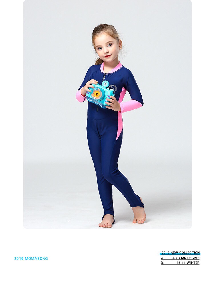 Bộ bơi bé gái dài tay, vải chống nắng UPF 50+ Momasong (Korea), hồng trắng