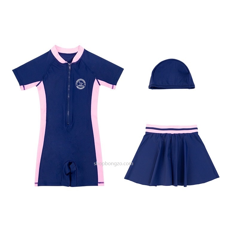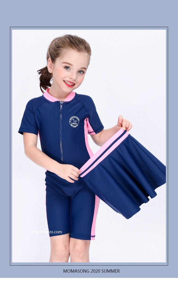 Bộ bơi bé gái cộc tay, xanh hồng kèm chân váy rời, Momasong (Korea)