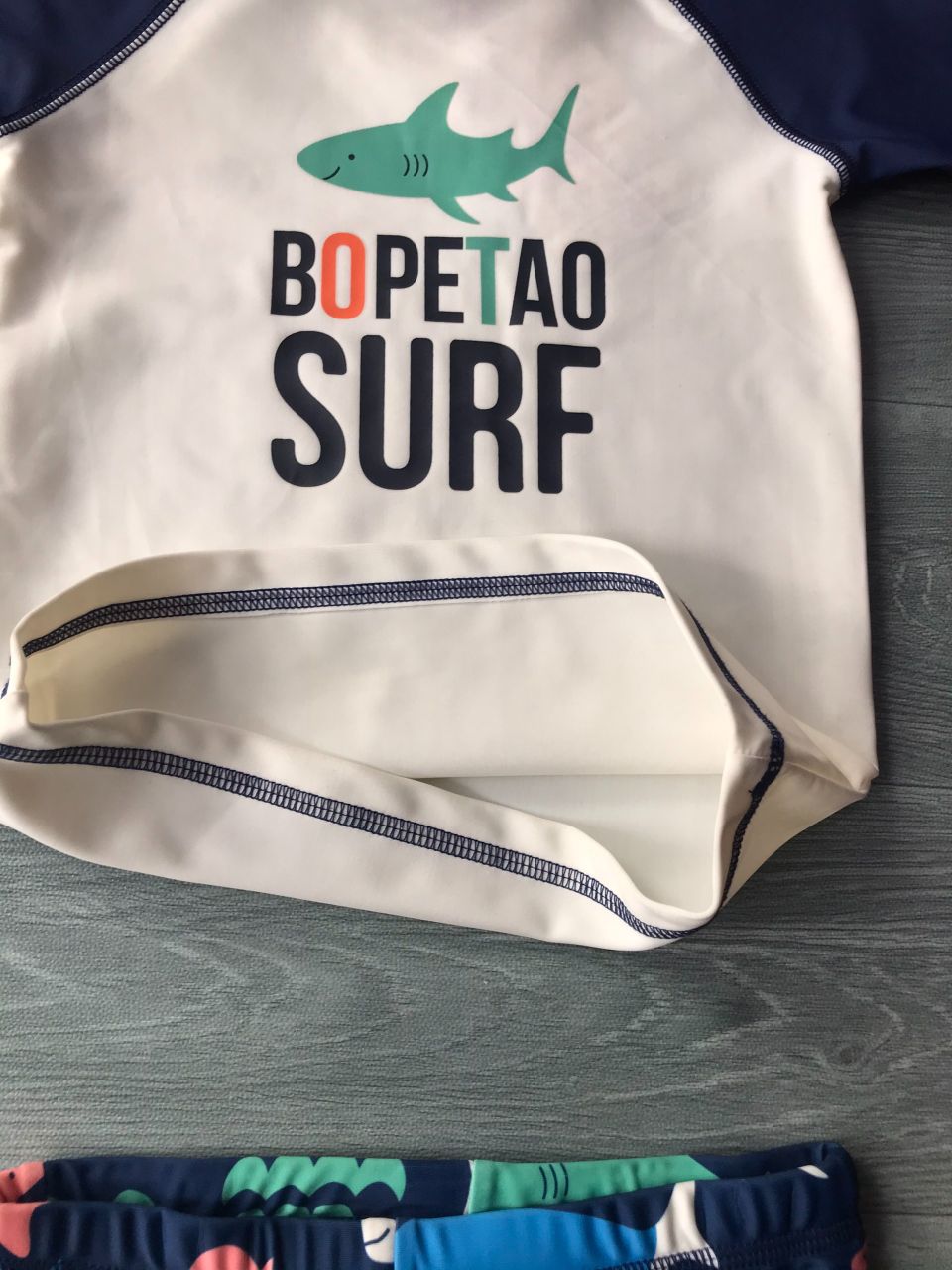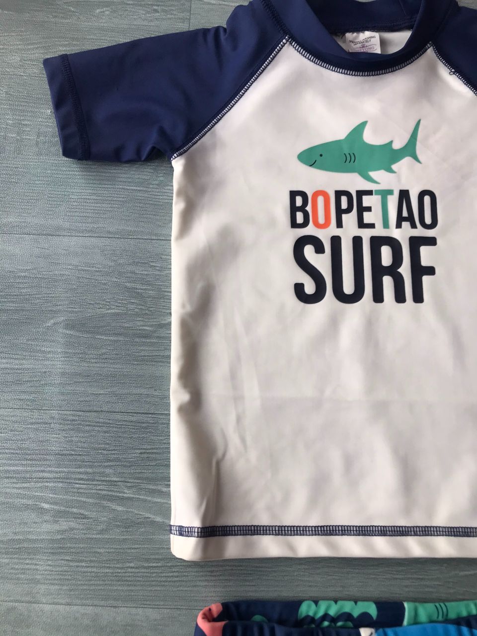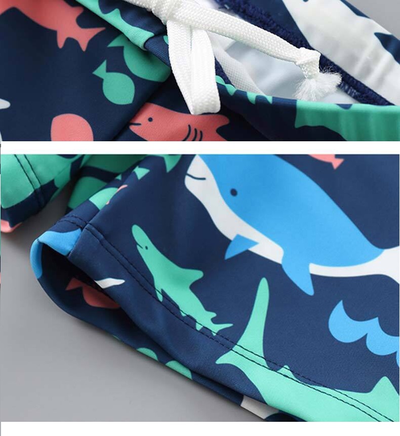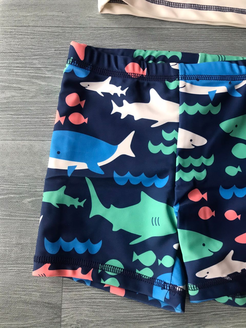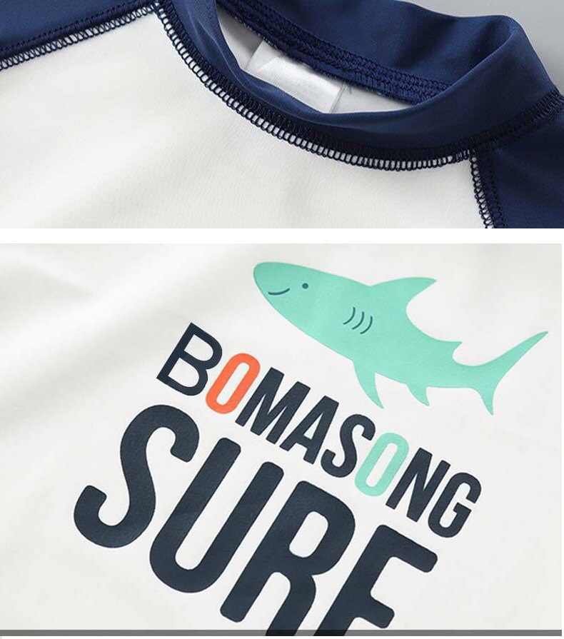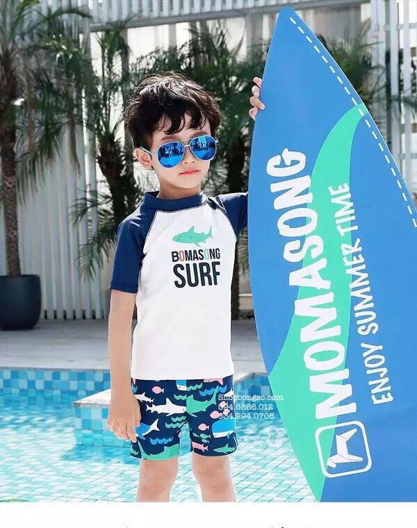 Bộ bơi bé trai cộc tay trắng cá mập, tay xanh, quần rời Momasong