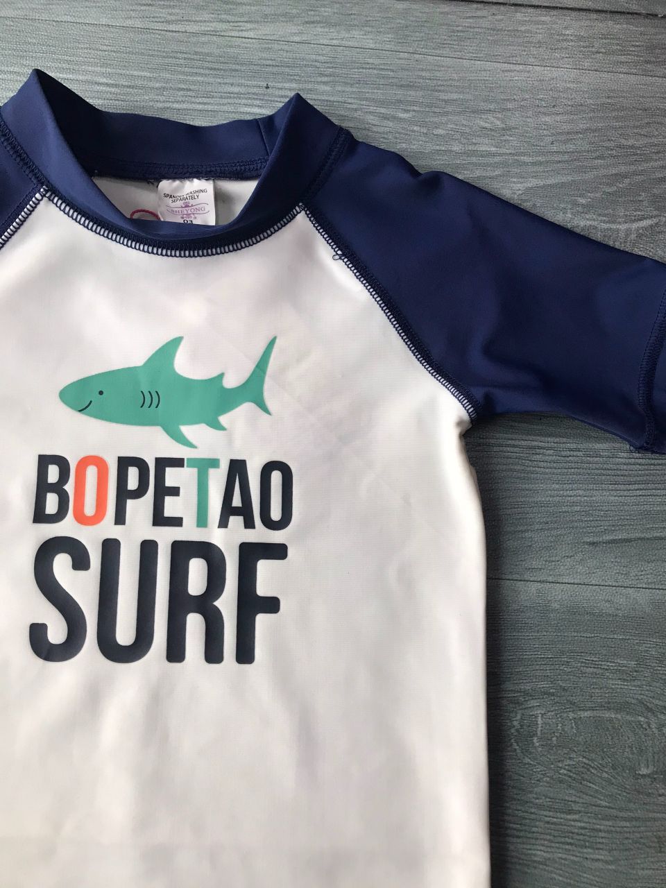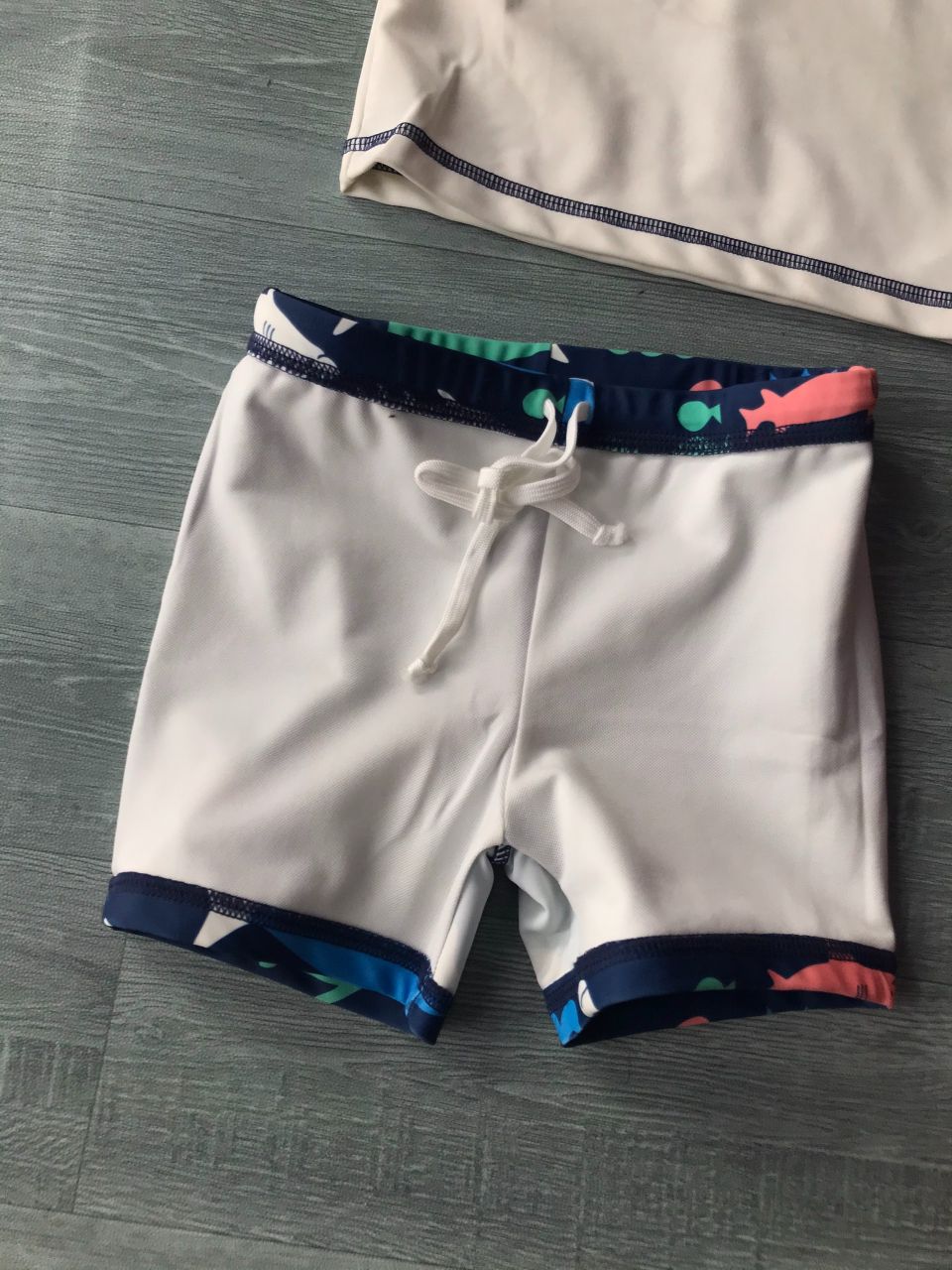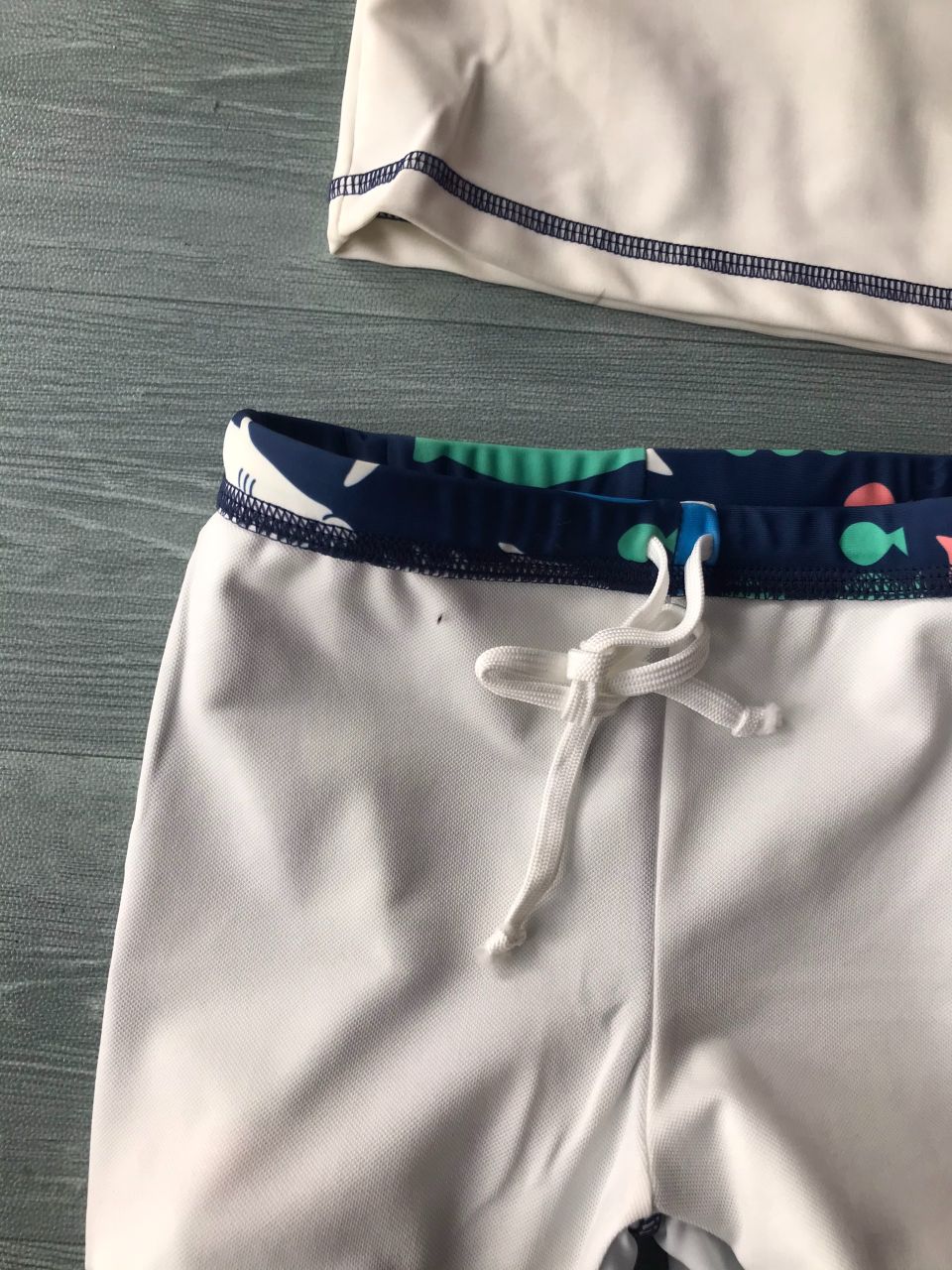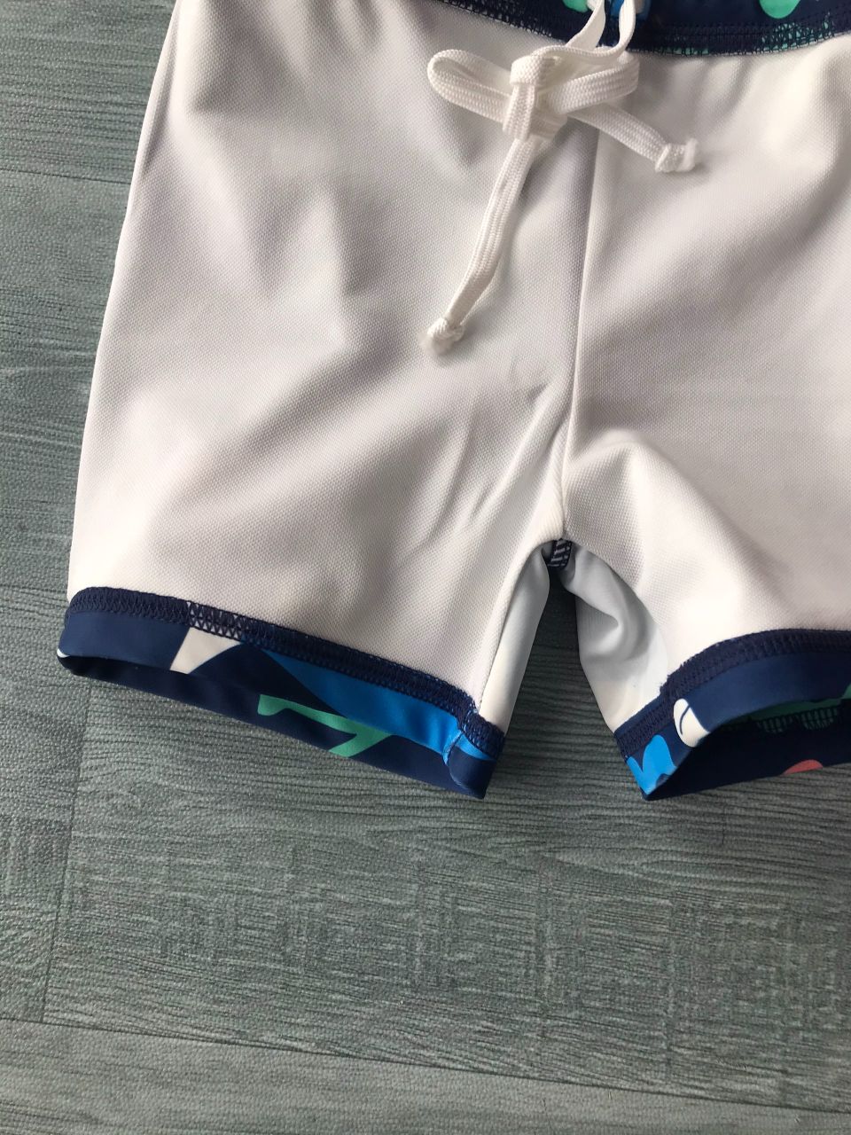 Bộ bơi cộc tay bé trai, màu trắng xanh, quần 2 lớp, chống nắng UPF 50+, YUKE
