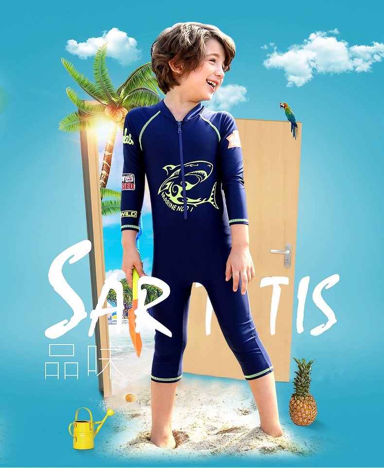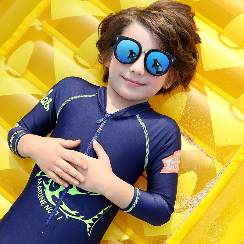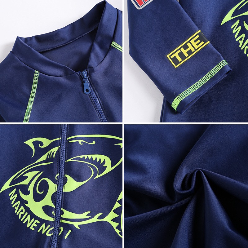 Bộ bơi bé trai chống nắng UPF50+, màu xanh, dài tay, Paradise, YUKE