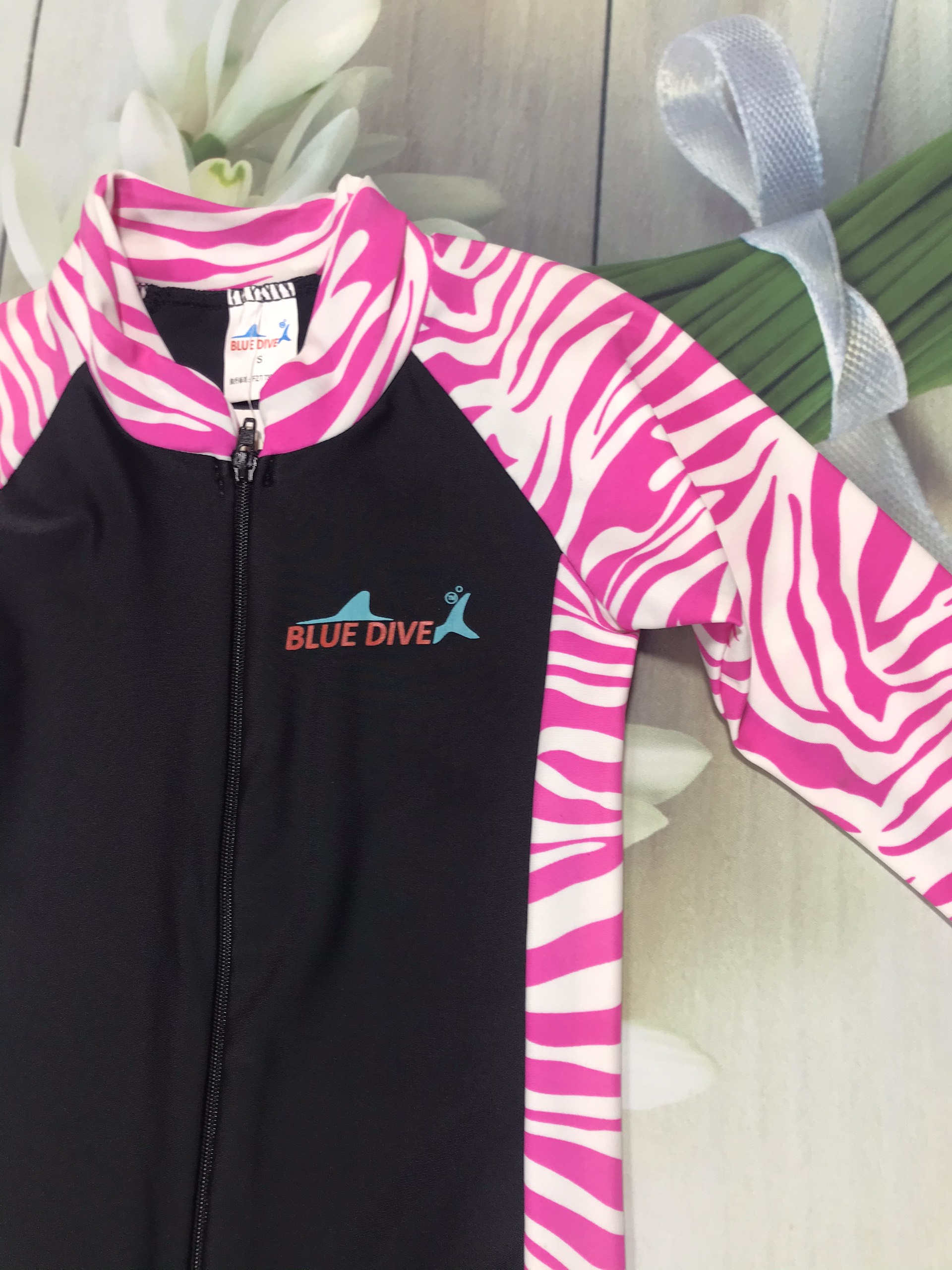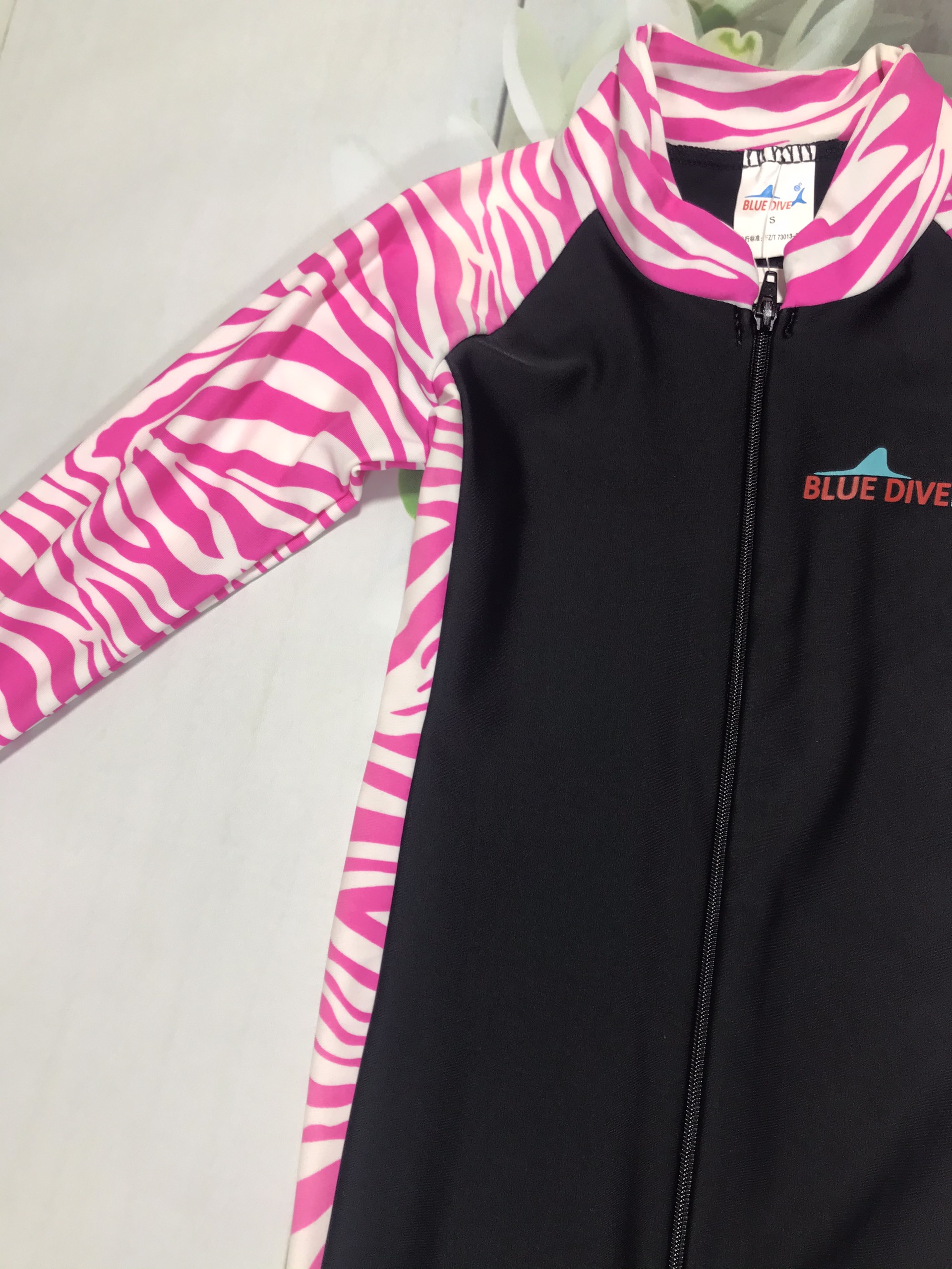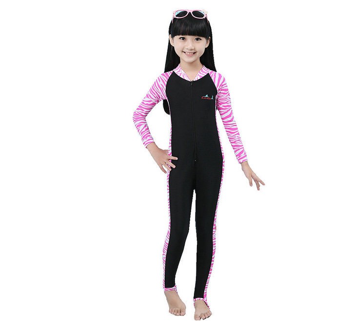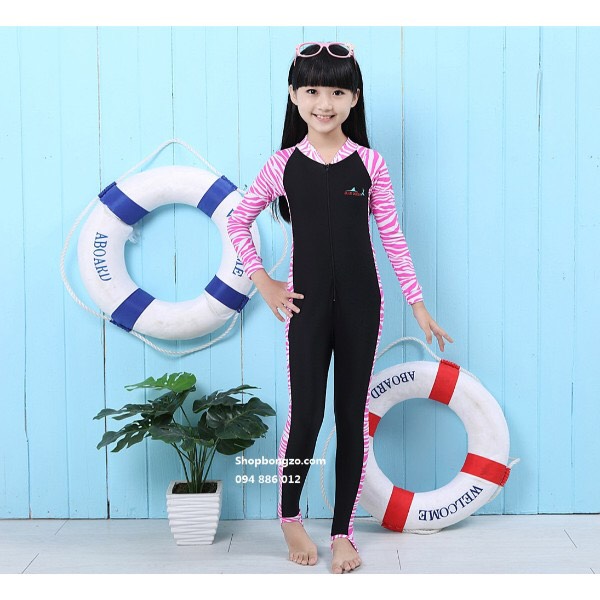 Bộ bơi bé gái, vải chống nắng UPF 50+, kháng Clo, dáng dài liền, màu than tay trắng, Dive&Sail