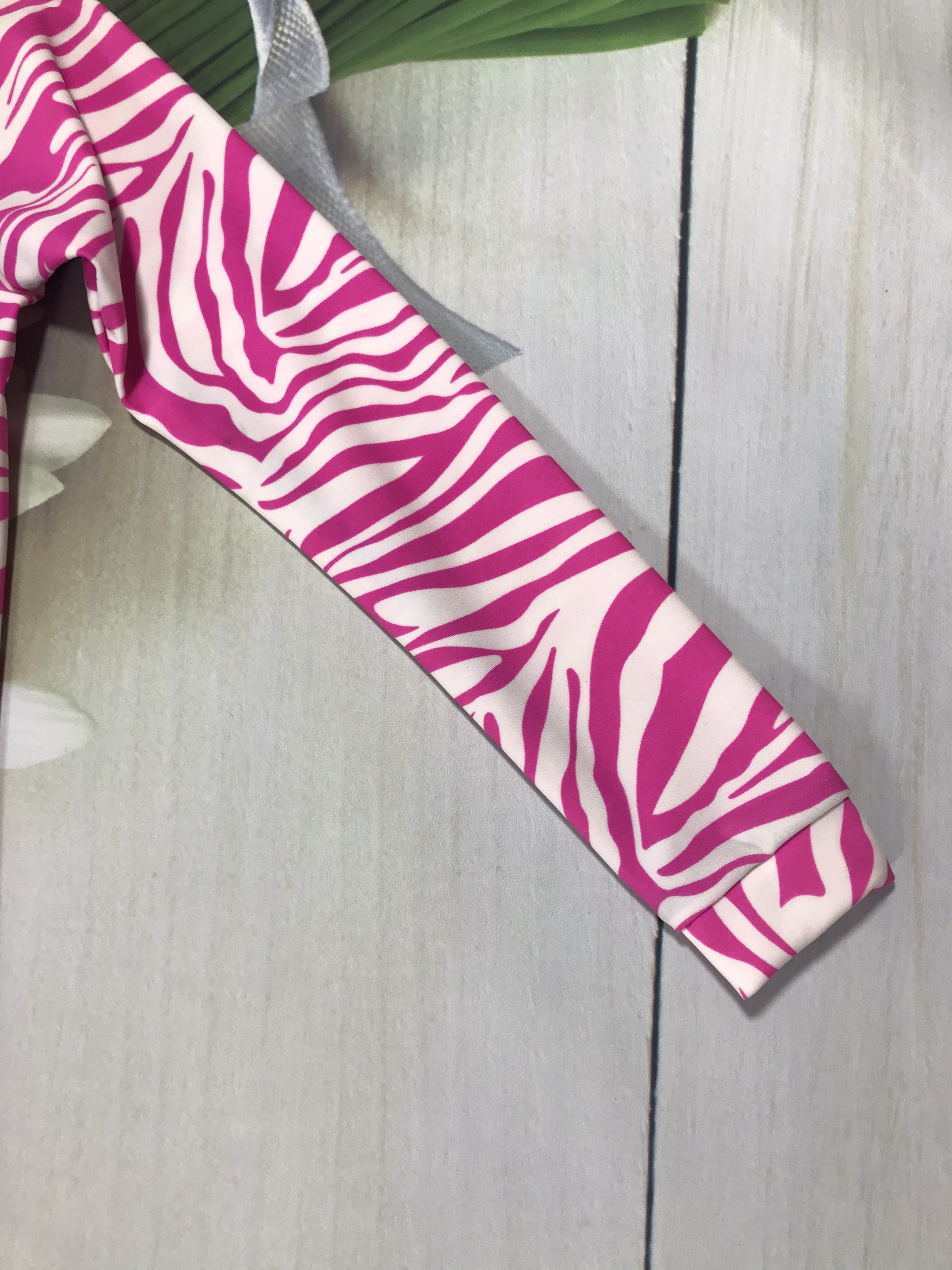 Bộ bơi bé gái dài tay, vải chống nắng UPF 50+ Momasong (Korea), hồng trắng