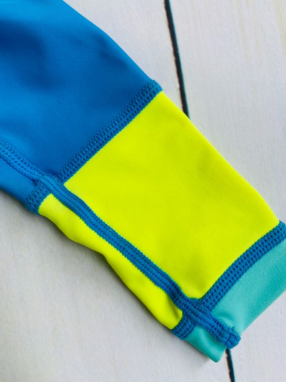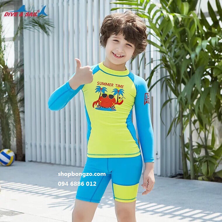 Bộ bơi dài vàng, tay xanh, quần rời cộc Dive Sail