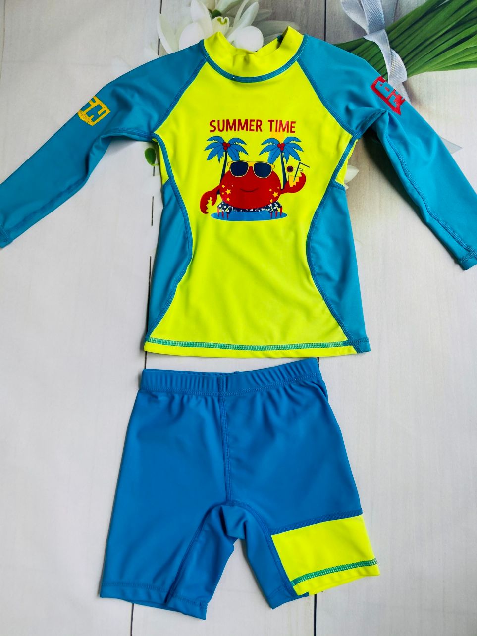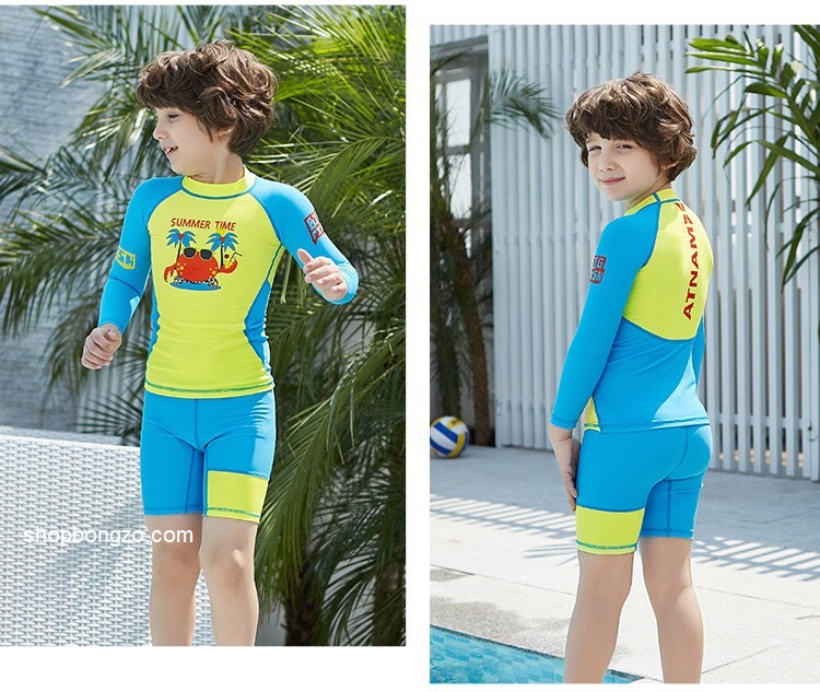 Bộ bơi bé trai chống nắng UPF50+, màu xanh, dài tay, Paradise, YUKE